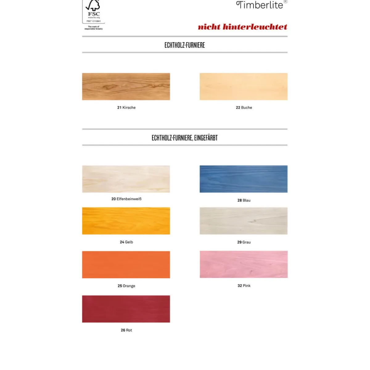 - Hergestellt aus FSC-zertifiziertem, lichtdurchlässigem Echtholzfurnier
