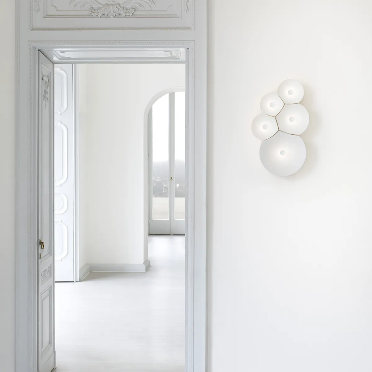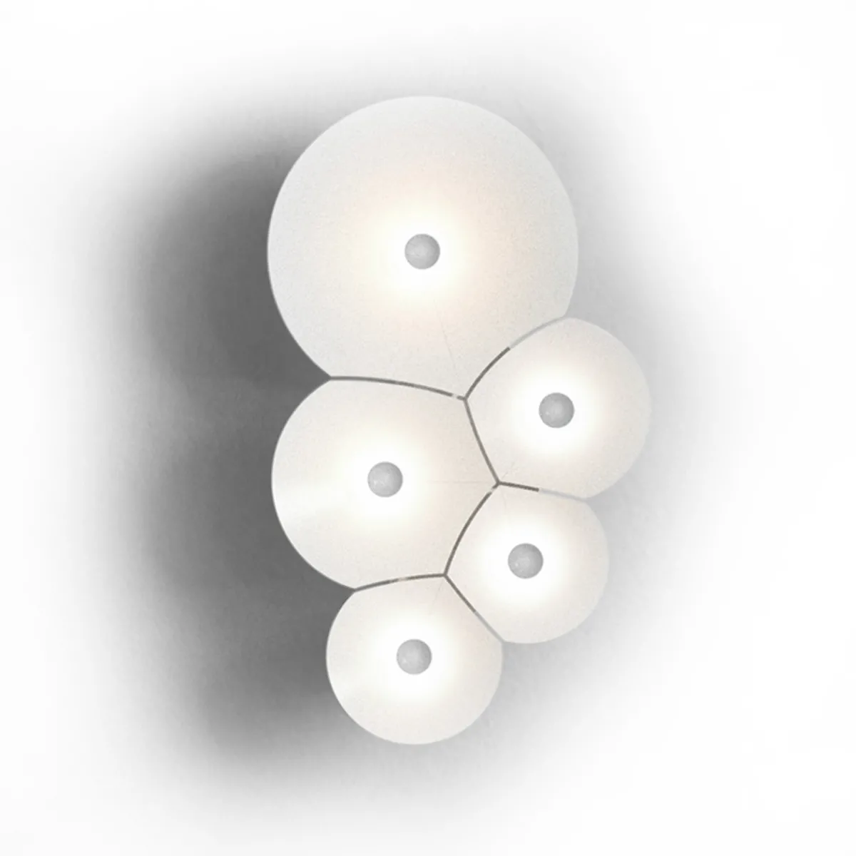 - Asymmetrisch angeordnete, gewölbte Elemente aus mattweißem Polycarbonat erzeugen eine organische Anmutung und wecken Assoziationen an Seifenblasen