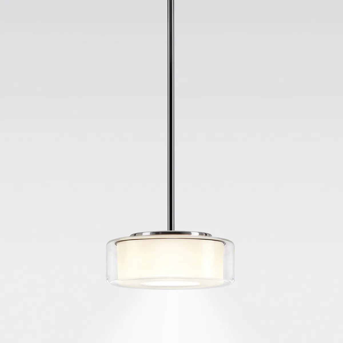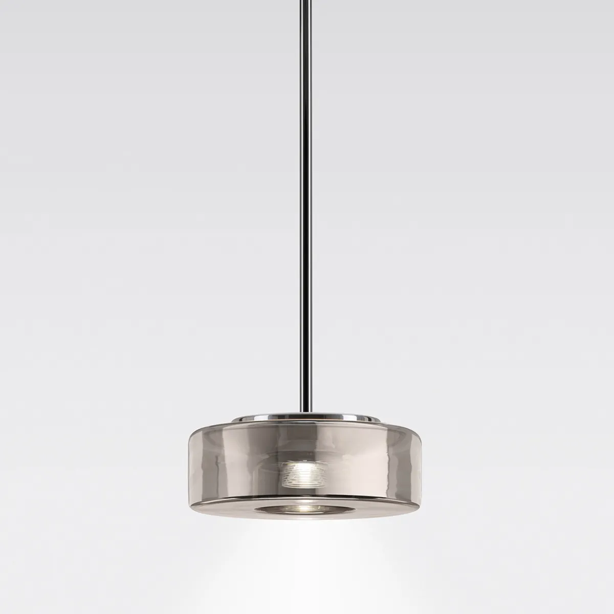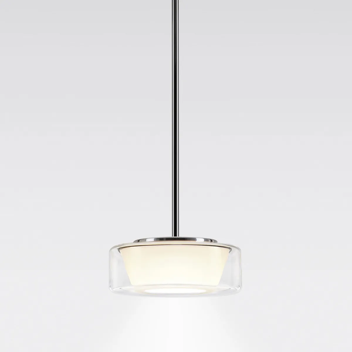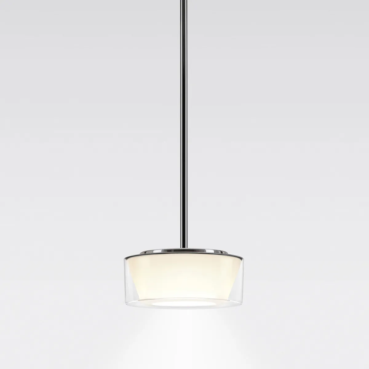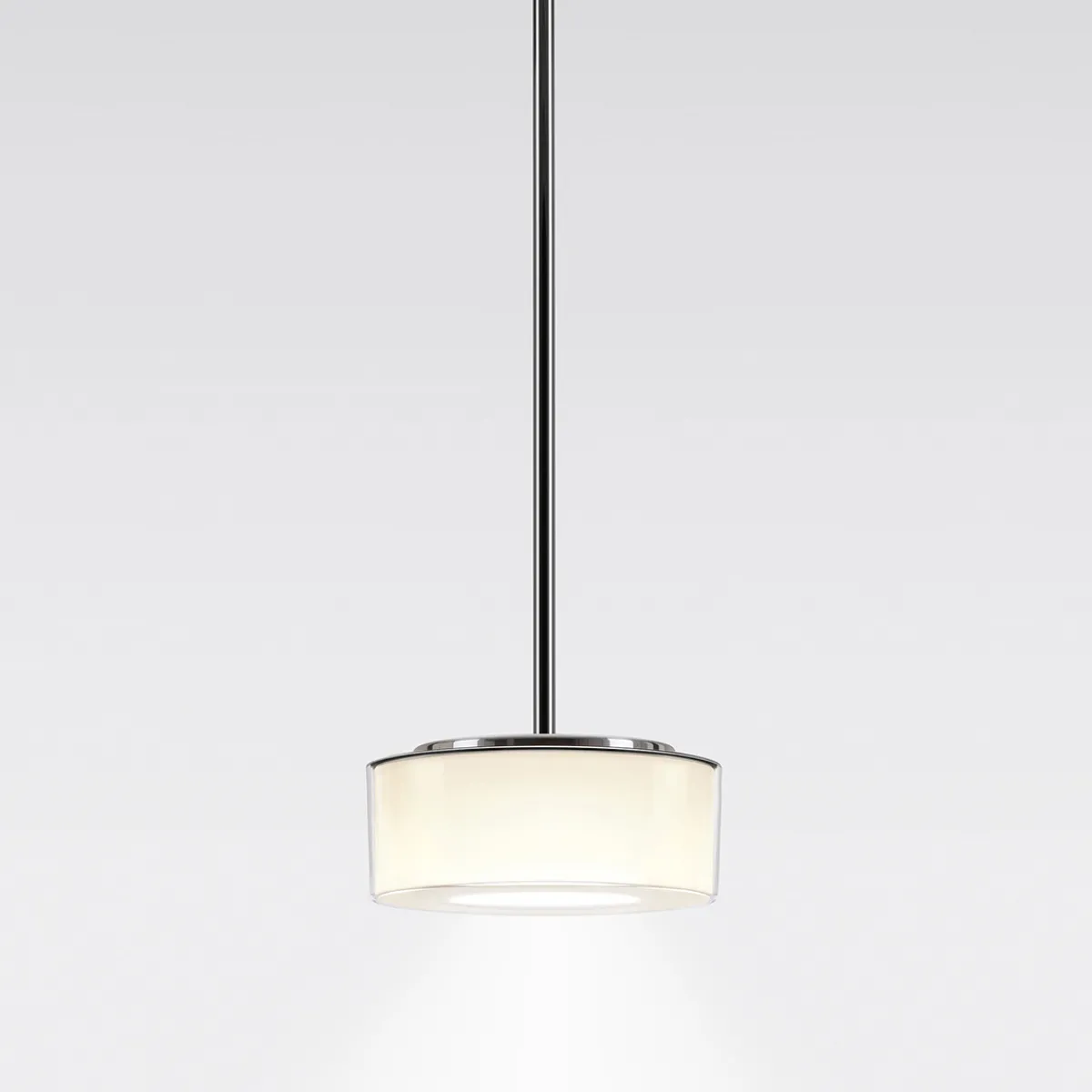 Die serien.lighting Curling Suspension Tube S LED ist mit einem opalen, transparenten oder silberfarbenen Lampenschirm aus Acrylglas oder mundgeblasenem Glas erhältlich. Für eine verbesserte Lichtlenkung und besonders sanfte Lichtabgabe kann die Hängeleuchte mit einem inneren Reflektor aus Polycarbonat erworben werden.