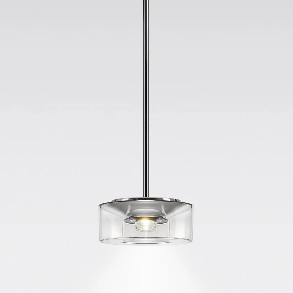 - Modern-elegante Pendellampe mit Edelstahlrohrabhängung