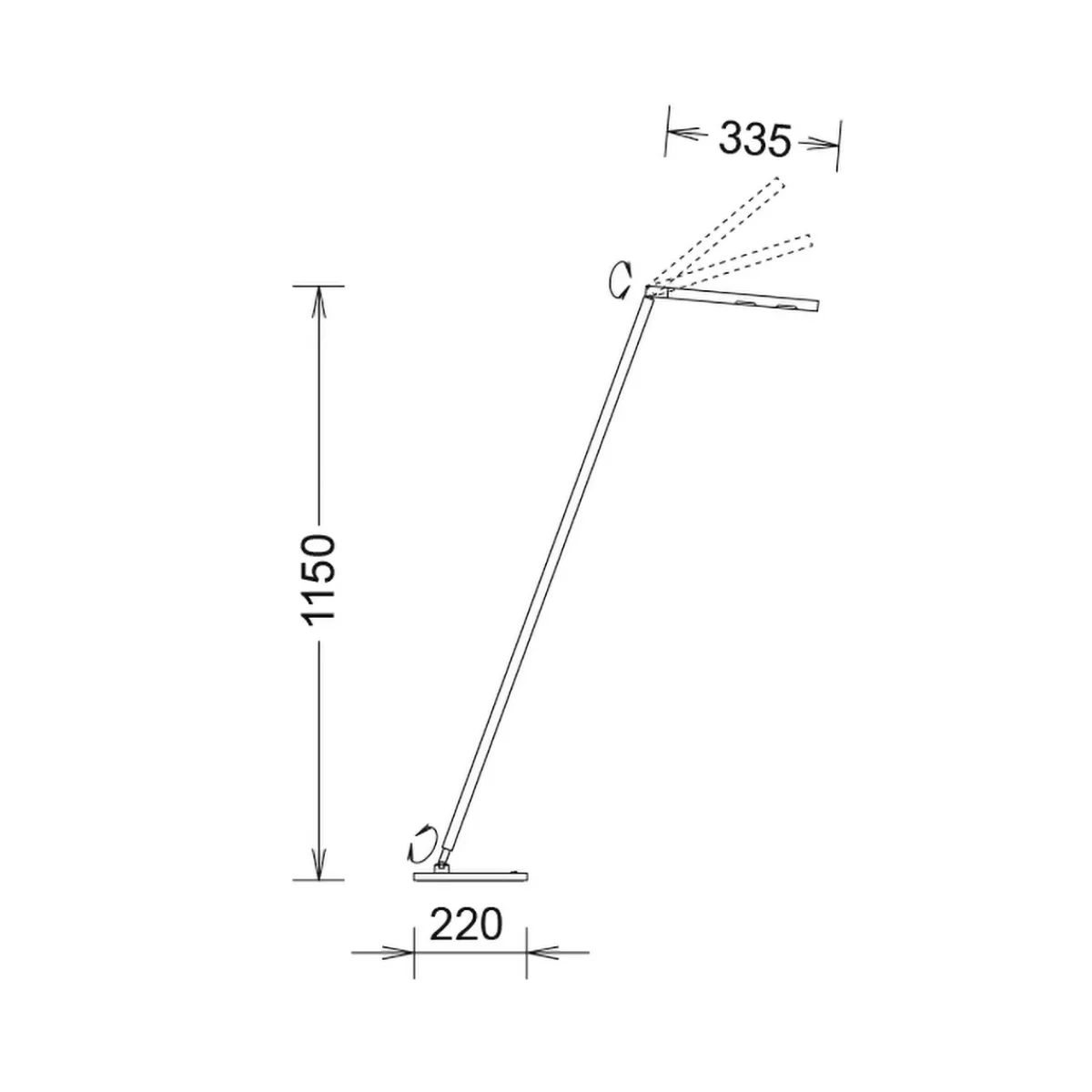 - Mit ausrichtbarem Leuchtenkopf und schwenkbarem Fuß