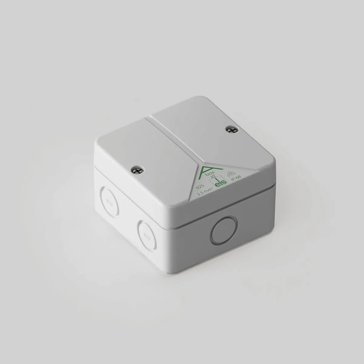 Der .DE Erd-Abzweigkasten ermöglicht den Anschluss von bis zu 6 Leuchten an die bauseitig verlegte Zuleitung im Erdreich. Nach der Installation werden alle elektrischen Leitungen im Abzweigkasten mit Gießharz verschlossen (im Lieferumfang inbegriffen).