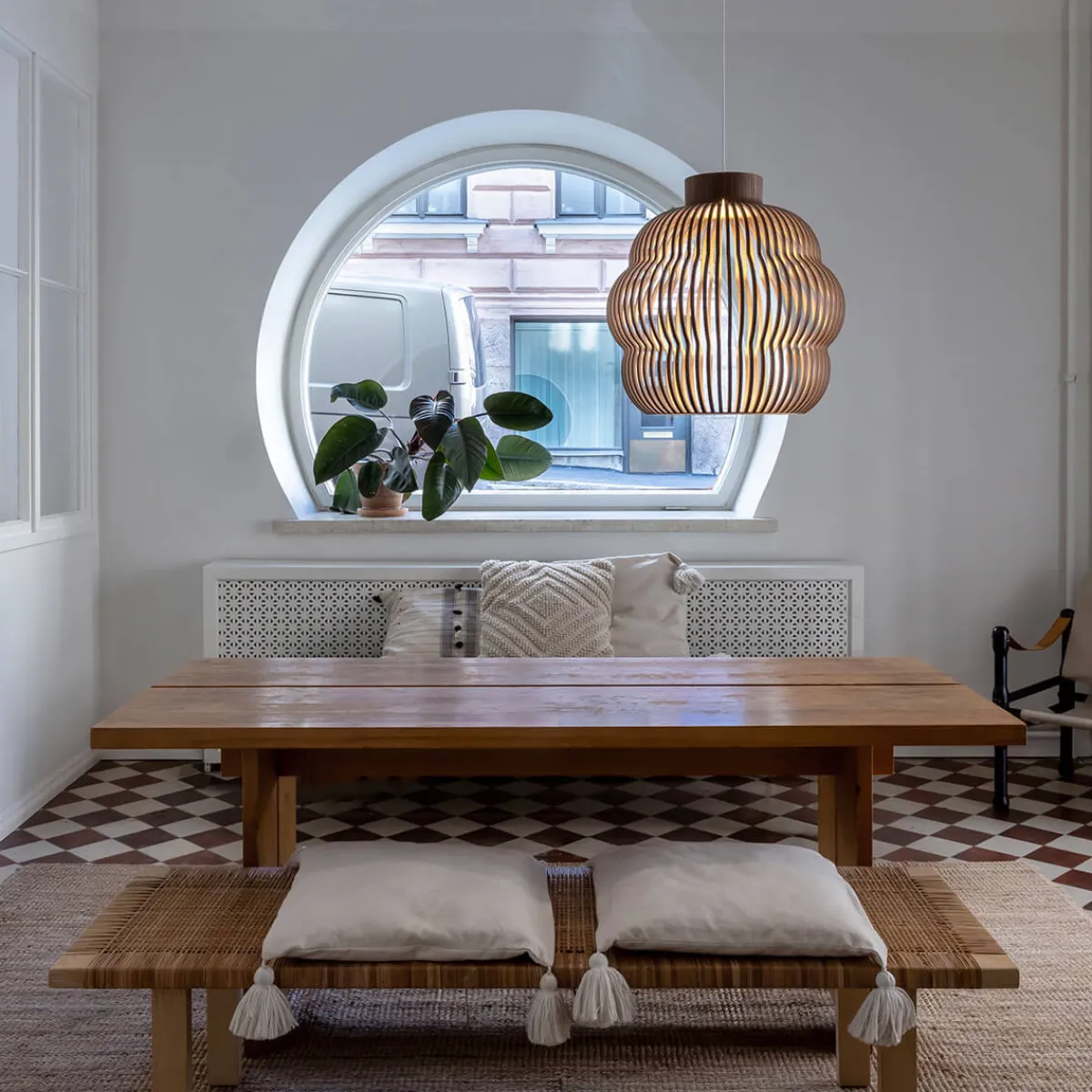 Die Kumulo, gefertigt in der firmeneigenen Manufaktur im finnischen Heinola, repräsentiert die tiefe Verbundenheit von Secto Design zur Natur. Jede wird sorgfältig von Hand aus PEFC-zertifiziertem, einheimischem Birkenholz hergestellt, das nicht nur für seine Robustheit, sondern auch für seine ästhetische Wärme bekannt ist. Die feinen Holzstreben formen einen geschwungenen Lampenschirm, der das Licht sanft streut und so eine einladende Atmosphäre kreiert.