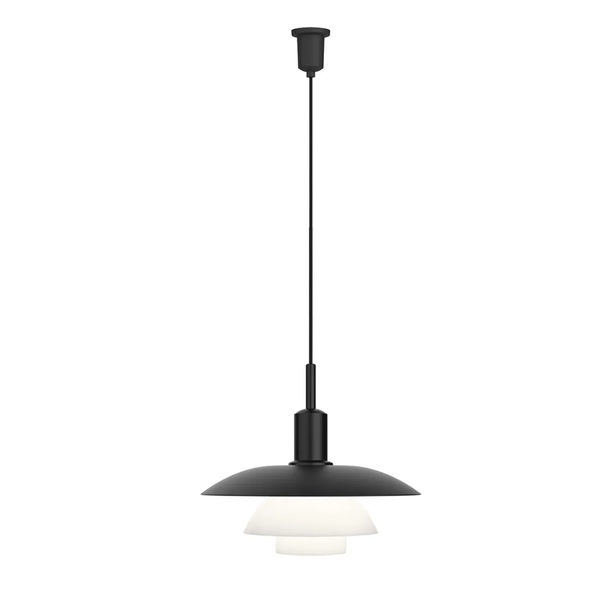 Die PH 5/5 komplettiert die weltberühmte PH Leuchtenkollektion von Louis Poulsen. Die Pendellampe basiert auf dem revolutionären PH-Dreischirmsystem, das der dänische Architekt und Designer Poul Henningsen zwischen 1925 und 1926 entwickelte. Ein Oberschirm mit einem Durchmesser von 50 cm sitzt zwei kleineren Schirmen auf – eine Komposition, die einem Größenverhältnis von etwa 3:2:1 folgt. Das Ergebnis ist eine perfekte Lichtreflektion und ein blendfreies, angenehmes Lichtbild.