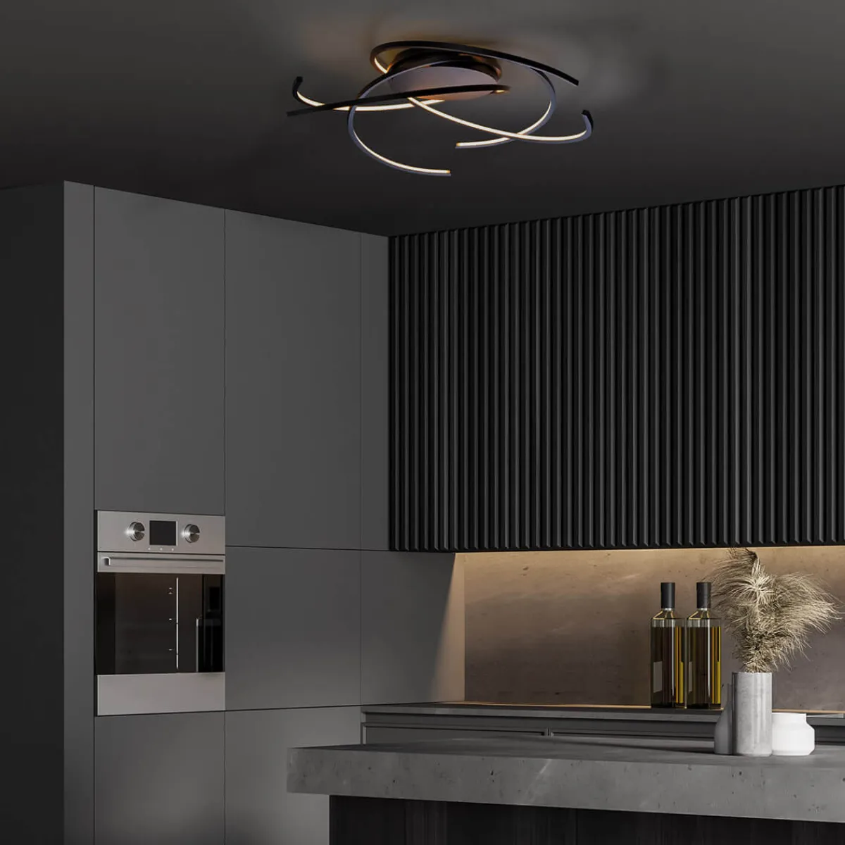 - Eine spacige Smart-Home-Deckenleuchte mit halb runden Lichtstreifen