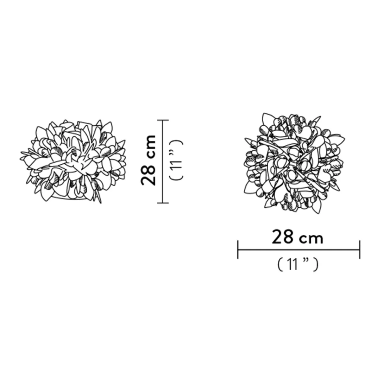 Der Schirm besteht aus sorgfältig von Hand zusammengesetzten Kunststoffelementen aus Opalflex®, einem exklusiven Technopolymer von Slamp. Dieses flexible, unzerbrechliche und hitzebeständige Material behält seine optischen Eigenschaften über Jahre hinweg bei und streut das Licht auf harmonische Weise. Das dezente Blattdekor unterstreicht die natürliche Inspiration der und verleiht ihr eine besondere Leichtigkeit.