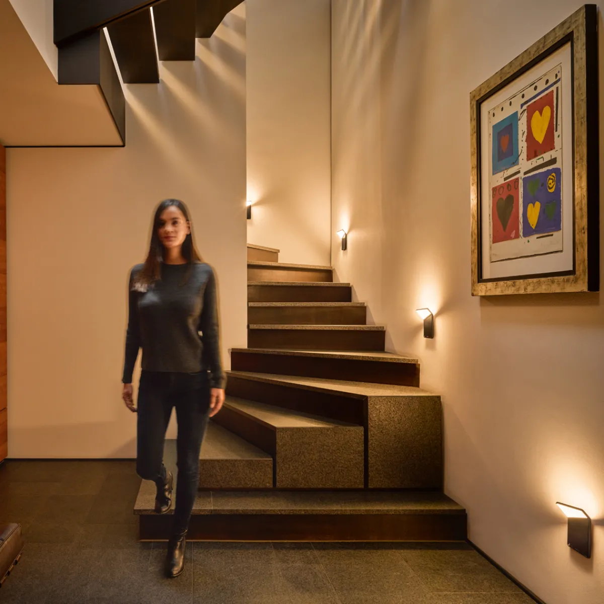 Anwesenheitssensor, Helligkeitserkennung und individuell einstellbare Komfort-Modi machen die zu einem nützlichen Lichttool, das man nicht mehr missen möchte. Der integrierte Bewegungsmelder ist mit einer einstellbaren Nachleuchtdauer kombinierbar, die Helligkeitserkennung reagiert auf das Umgebungslicht und schaltet die Wandleuchte selbstständig ein oder aus. Auskunft über den aktuellen Betriebs- und Ladestand gibt die mittig positionierte LED-Statusanzeige.