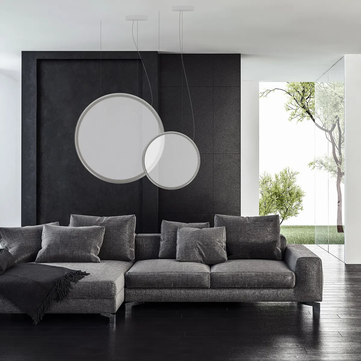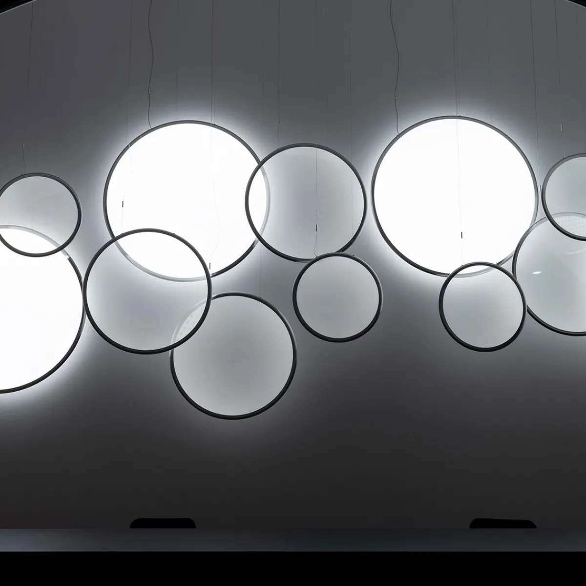 - Modern-diskrete Pendelleuchte mit kreisrundem Aluminiumprofil