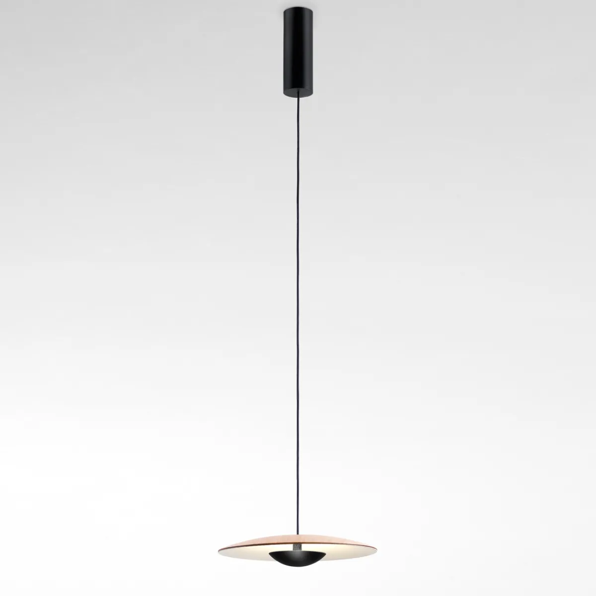 - Formschöne Pendelleuchte mit Schirm aus dünnem Schichtholz