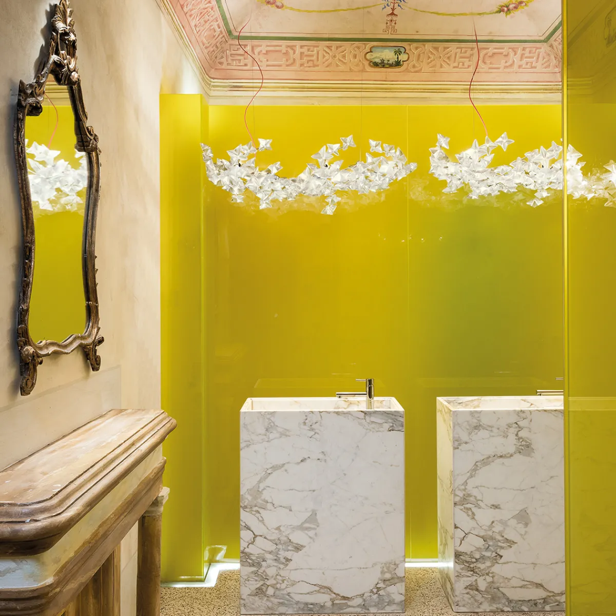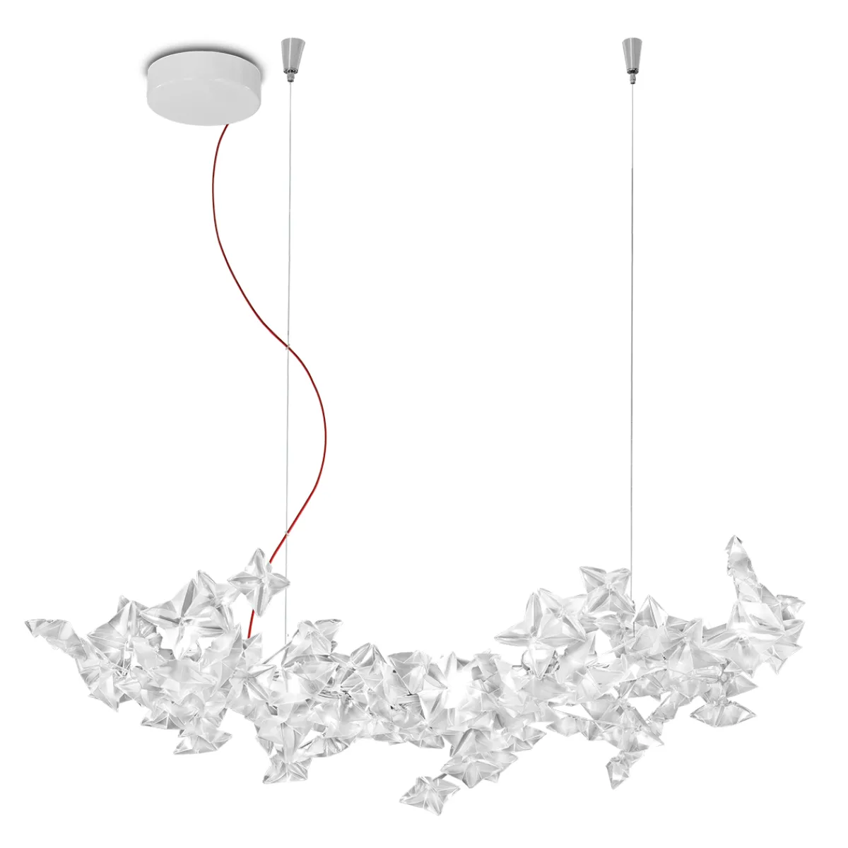In sorgfältiger Handarbeit im firmeneigenen Werk von Slamp nahe Rom gefertigt, ist jede Hängelampe ein echtes Unikat. Die verwendeten Technopolymere werden mittels umweltschonender Kalt-Schnitt-Technik verarbeitet, was CO2-Emissionen reduziert und zur Nachhaltigkeit der Produktion beiträgt.