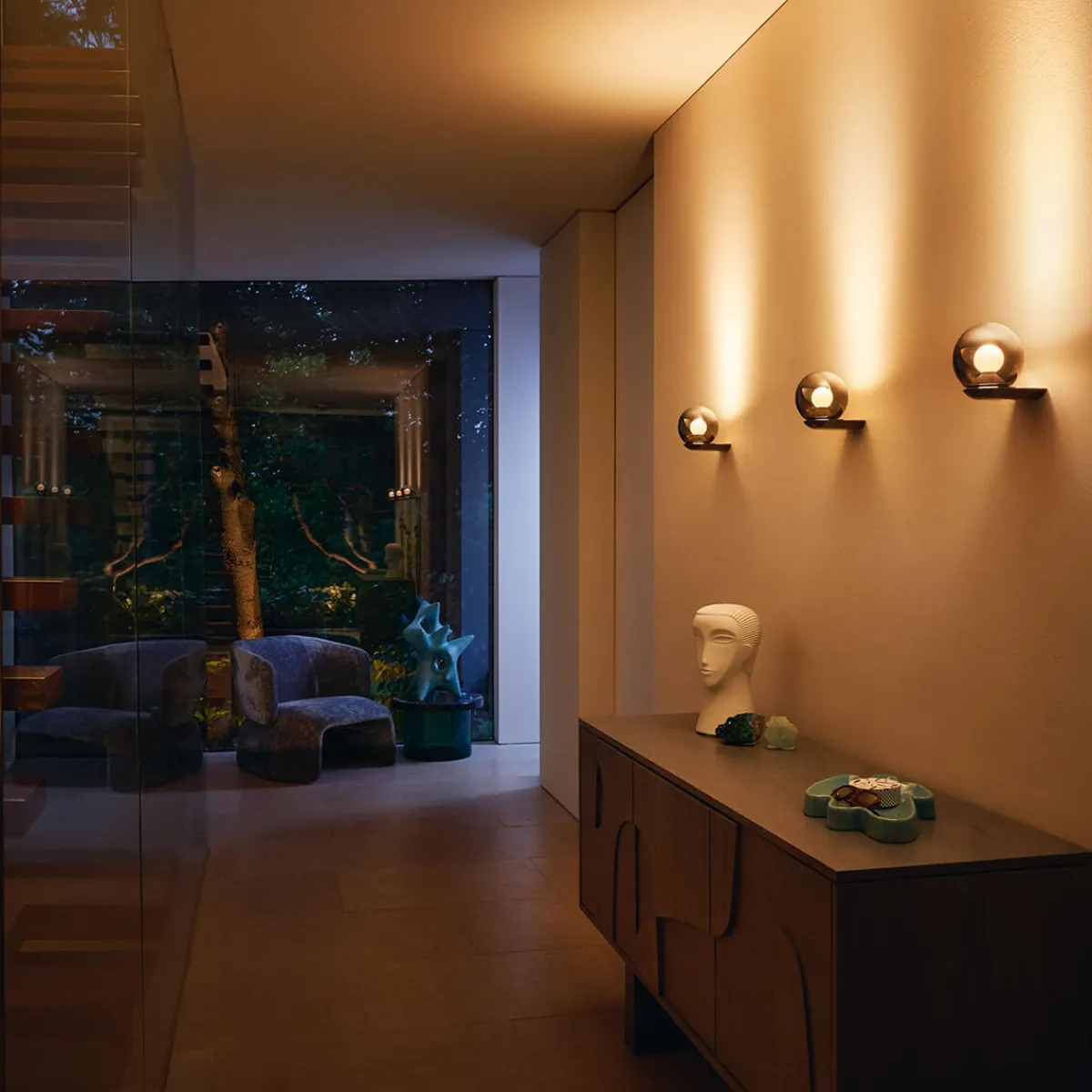 - Kugelförmige Wandlampe mit bodenverspiegeltem Glas