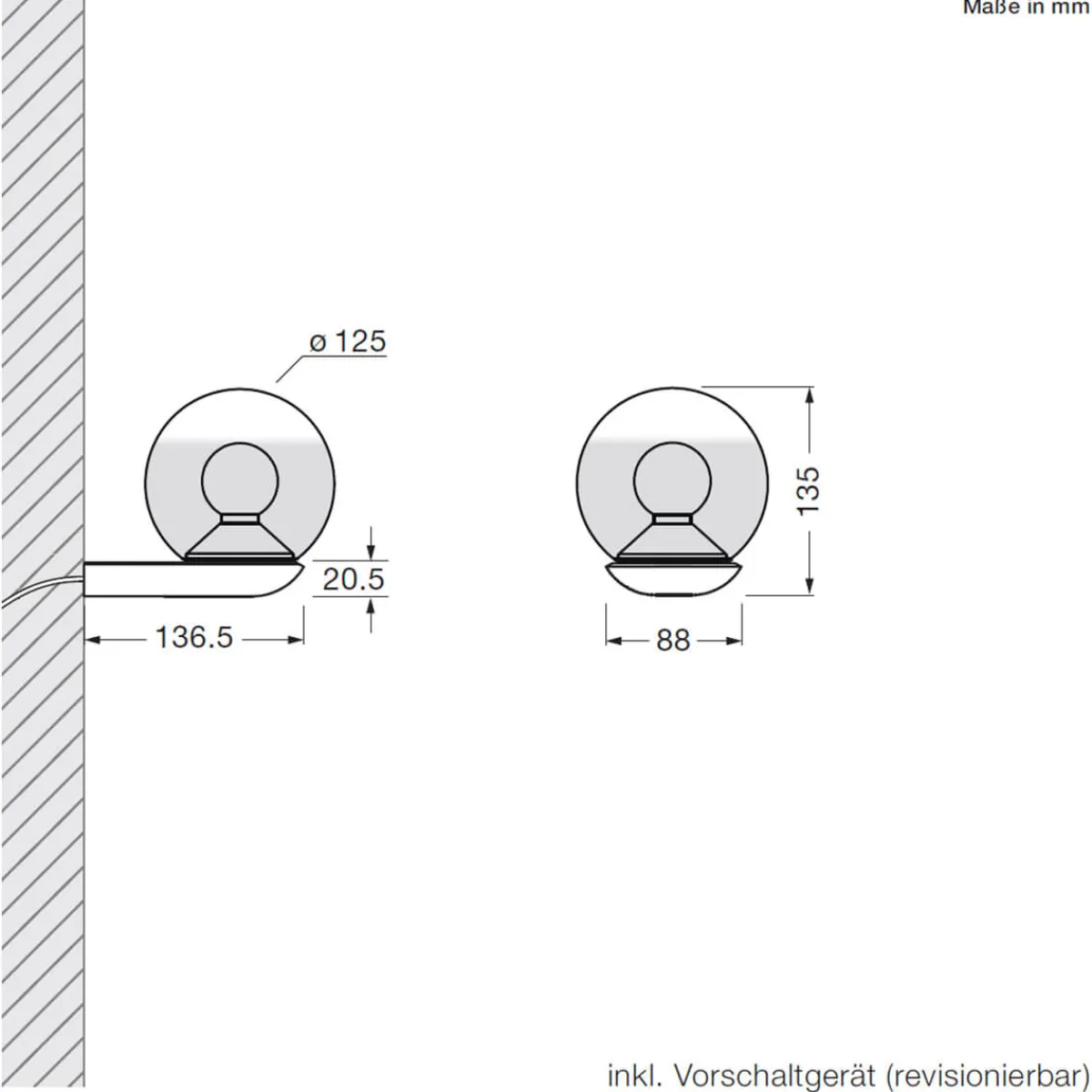 | Sonstige Maße: | Wandhalterung: 13,65 x 8,8 x 2,05 cm |