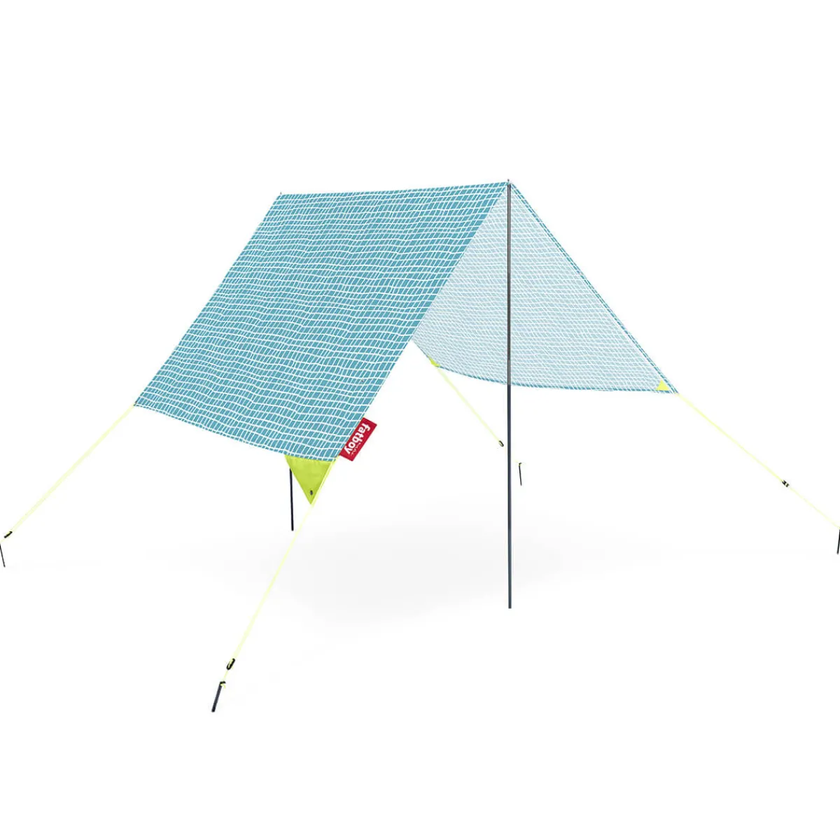 Der rasche Aufbau verdankt sich dem ausgeklügelten und doch einfachen Design des Sonnensegels: seinen faltbaren Aluminiumstangen und dem leichten Baumwolltuch. Zur Auswahl stehen drei verschiedene Aufstellmöglichkeiten. Je nachdem, wie hoch die Sonne steht, können Sie das Tuch mittig platzieren oder weiter zu einer Seite herabziehen. Aufgestellt spendet das Fatboy Miasun 3 m² Schattenfläche, ausreichend Platz für zwei Erwachsene und zwei Kinder.