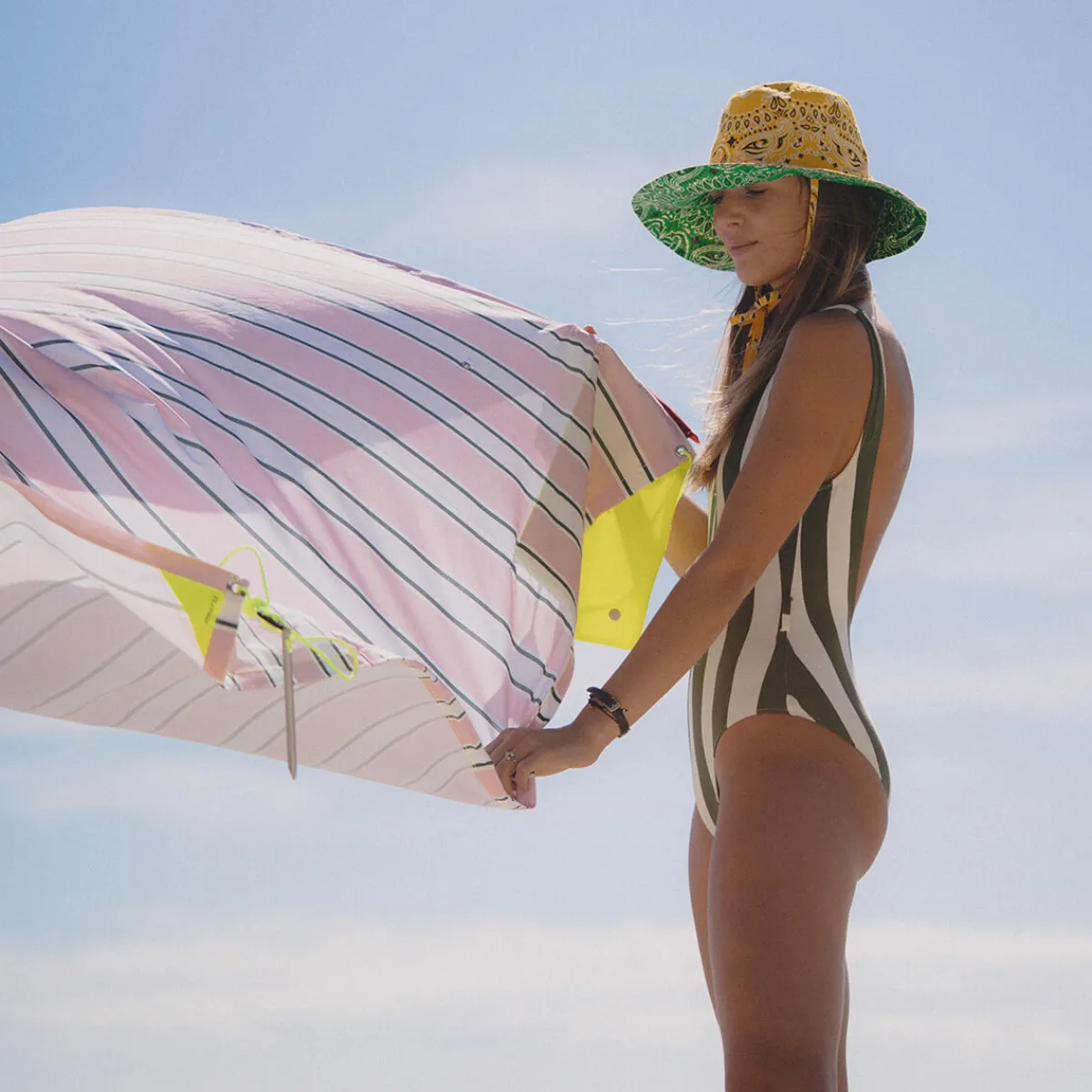 Entworfen wurde das Strandzelt von Valériane Voirin und Hortense Pontabry. Die französischen Designerinnen waren auf der Suche nach einem effektiven Sonnenschutz, der sich im Gegensatz zu klobigen Sonnenschirmen oder komplizierten Strandzelten einfach mitnehmen ließe. Dies ist ihnen mit dem Sonnensegel zweifelsfrei gelungen.