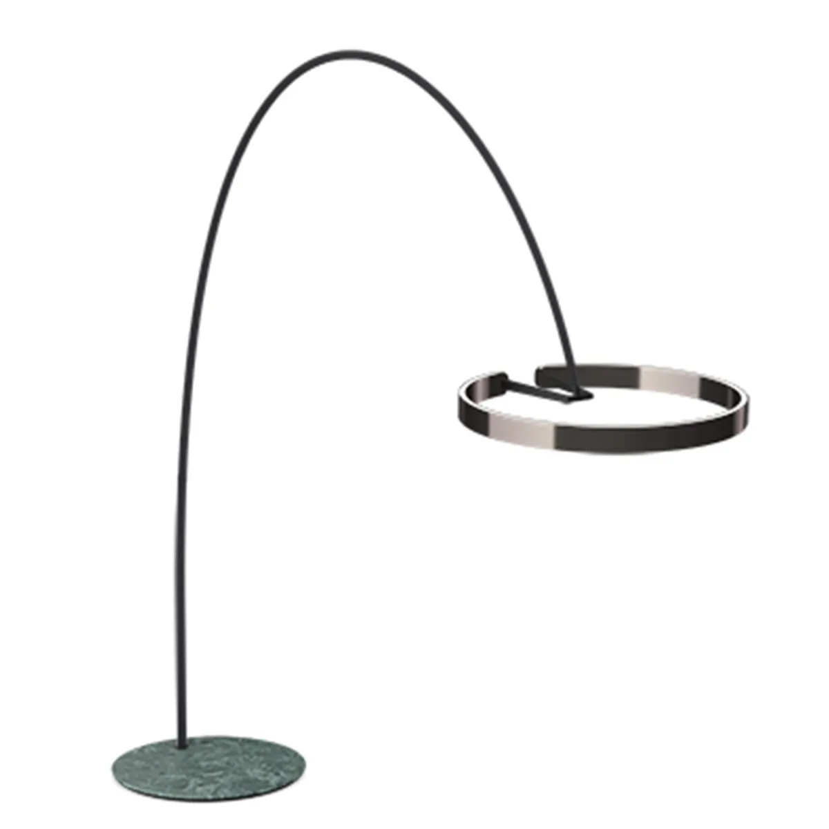 Die Mito largo der Occhio Edizione lusso ist der Luxusliner unter den Bogenleuchten. Ihr solider Sockel besteht aus edlem Marmor, der je nach Ausführung in warmem Braun (Emperador Marmor), markantem Schwarz (Marquina Marmor) oder modischem Grün (Guatemala Marmor) gehalten ist. Der Sockel dient als Gegengewicht zum ausladenden Bogen, der die zu einer idealen Lichtquelle über Sofalandschaften und Tischflächen macht.