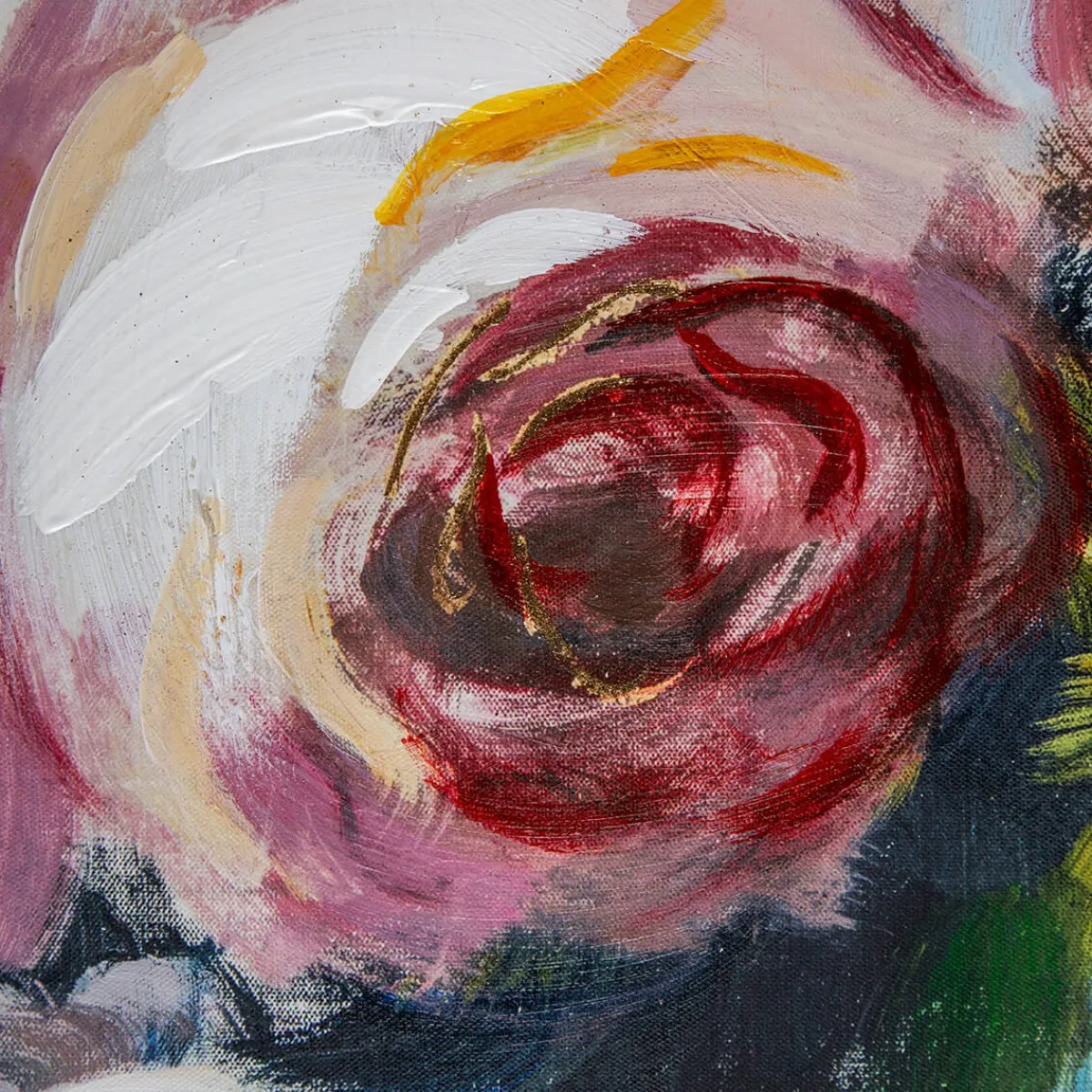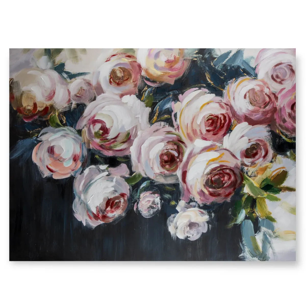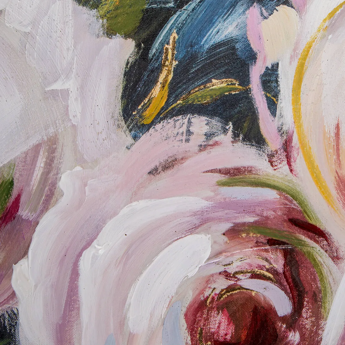 - Ölgemälde mit Pfingstrosen und goldfarbenen Akzenten