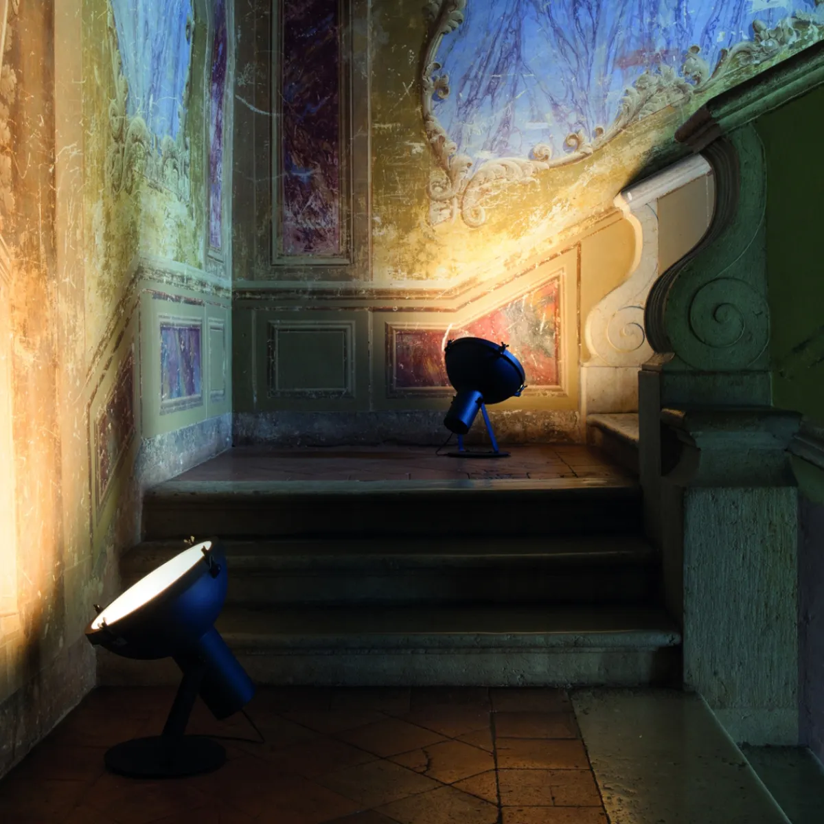 Die Projecteur 365 Bodenleuchte steht mustergültig für den rauen Charme des Industriestils des 20. Jahrhunderts. Mit ihrem Design orientiert sie sich an der Formensprache von Objekten aus Industrie und Technik, namentlich am Formgefühl klassischer Fabriklampen. Dank funktionaler Details wie der schwarz verchromten Flügelmuttern erhält die Projecteur 365 Terra jedoch auch dekorativen Wert.