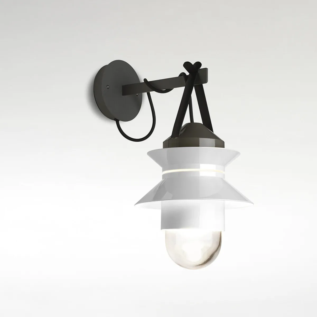 | Material/Oberfläche: | Tragkonstruktion: Polycarbonat grau, Diffusor: mundgeblasenes Glas, Wandhalterung: Metall graphitgrau lackiert |