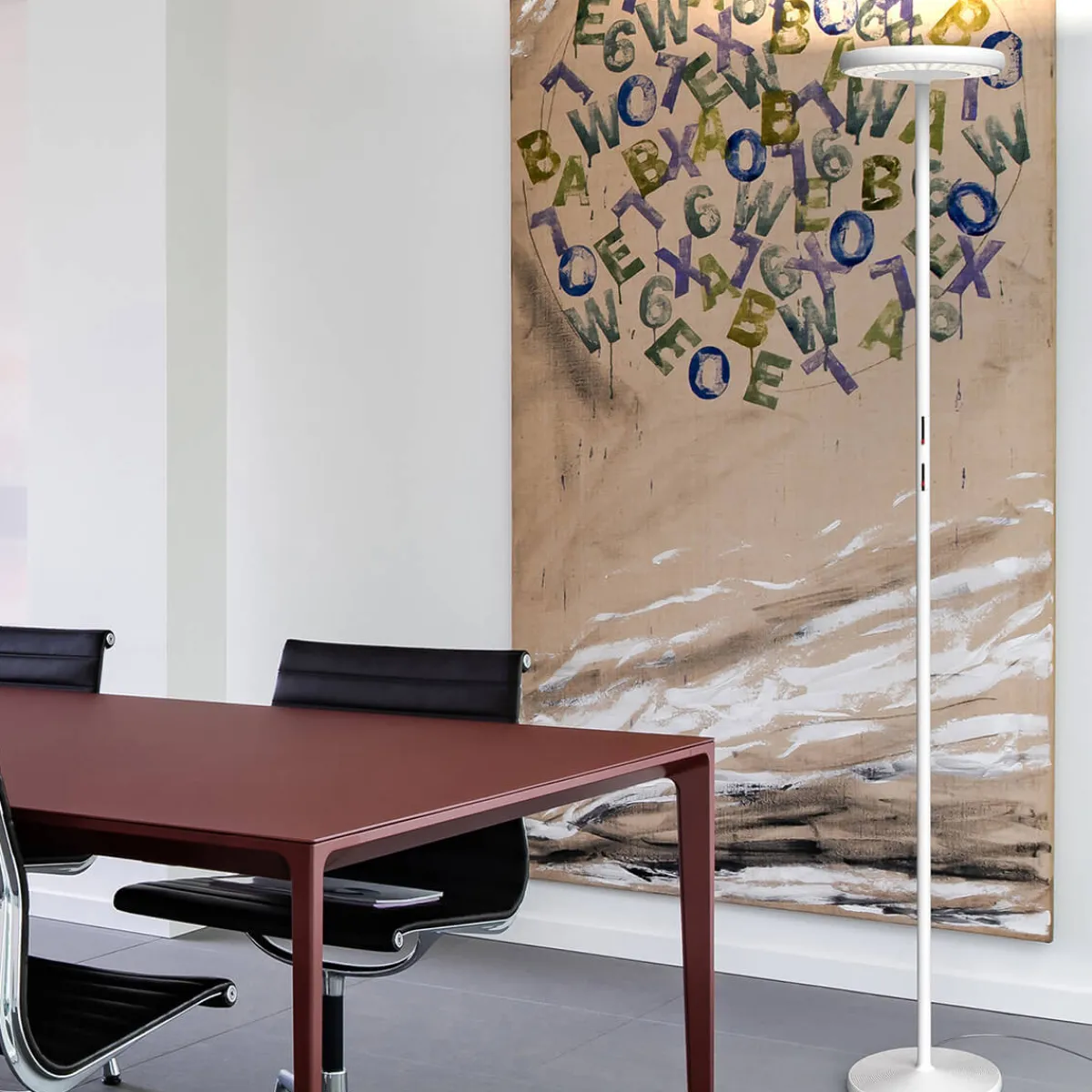 Erleben Sie die faszinierende Rotaliana Sol F1 LED Stehleuchte – ein brillantes Licht, das mit Innovation und Design beeindruckt. Die besteht aus einer sanft abgerundeten Scheibe, die zwei Leuchtkörper beherbergt. Diese wurden entwickelt, um die Strahlkraft von 96 nach unten gerichteten LEDs und 128 nach oben gerichteten LEDs optimal zu nutzen. Die Intensität des Lichts lässt sich getrennt voneinander für die obere und untere Beleuchtung regulieren, um eine perfekte Lichtatmosphäre zu schaffen.