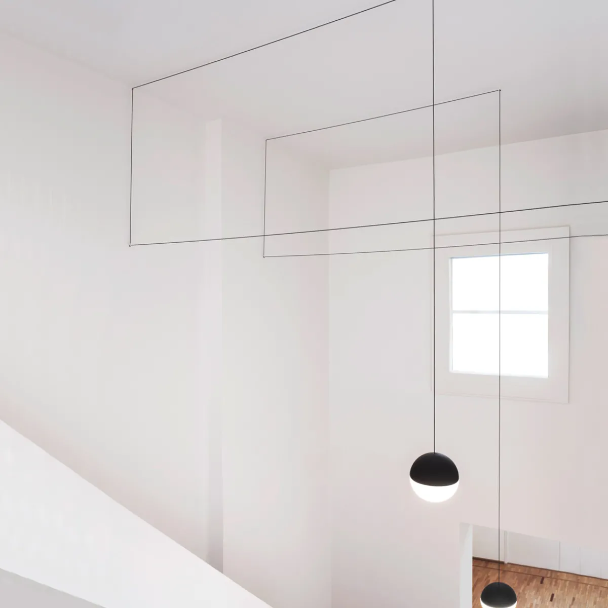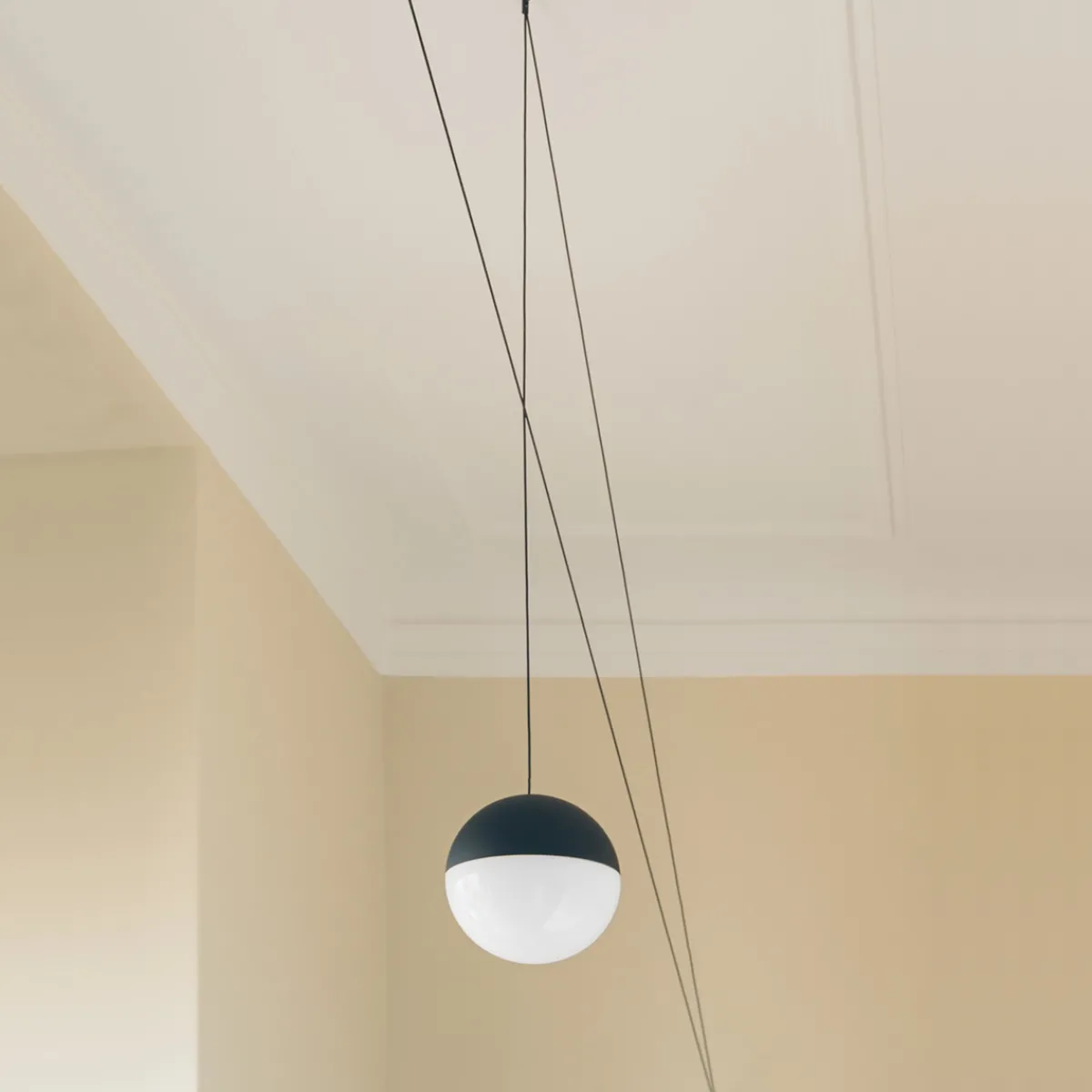 Mit der Flos String Light Sphere LED Pendelleuchte lassen sich filigrane Kompositionen im Raum kreieren. Das Pendel muss hierzu mit der String Light Wand- und Deckenrosette (max. 3 Köpfe) oder dem Fußschalter (max. 2 Köpfe) kombiniert werden. Zur Gestaltung abweichender individueller Kompositionen steht ein zusätzliches Anschlusskabel als Zubehör zur Verfügung.