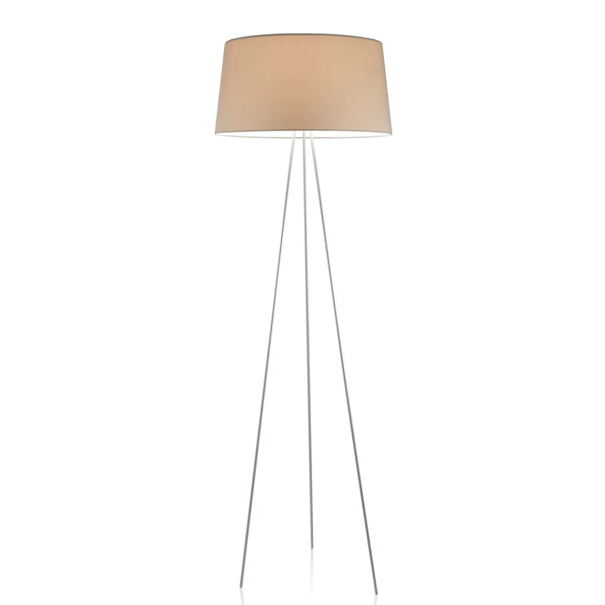 Die von Christophe Pillet entworfene Tripod macht ihrem Namen alle Ehre. Ein dreibeinige Metallstruktur dient der Stehleuchte als Standfuß und verleiht ihr Grazilität und eine moderne Linie. Der Leuchtenschirm ist aus feuerfestem Stoff gefertigt und in naturfarbener, weißer oder mokkabrauner Tönung gehalten. Verschlossen wird der Diffusor von einer durchlöcherten, eloxierten Aluminiumscheibe. Mit ihrem Stoffschirm erzeugt die Kundalini Tripod Floor ein warmes und raumgreifendes Licht, das einen jeden Wohnbereich auf diskrete Weise aufwertet.