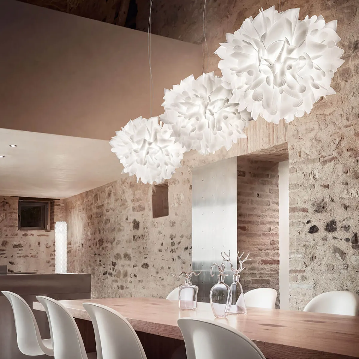 Eine Hymne an die Natur! Kunststoffteile, die bei der Herstellung der Veli Foliage Suspension Large übrig bleiben, werden von Slamp für den Bau von Nistkästen für Hummeln weiterverwendet.