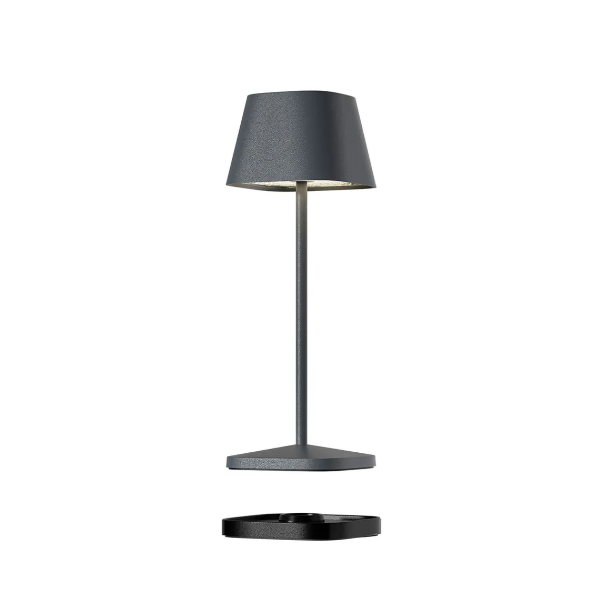- Kleine, kabellose Akku-Tischlampe mit puristischer Linienführung