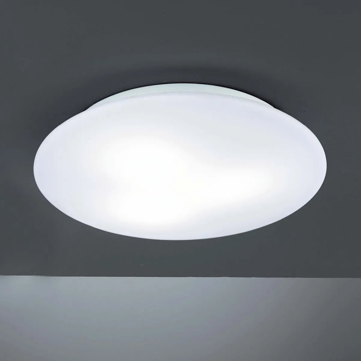 - Diskrete Deckenleuchte aus opalweiß satiniertem Glas