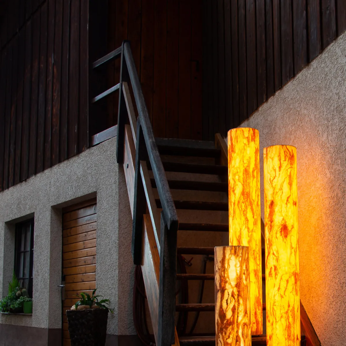 - Runde Quarzsandstein-Stehleuchte / Lichtsäule mit einer warm- bis kaltweißen Lichtfarbe (2.900-6.000 Kelvin)