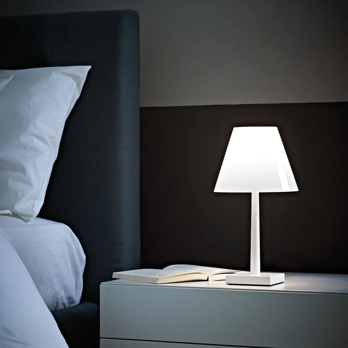 - Klassisch moderne Tischleuchte aus einem Polycarbonatschirm und einem Aluminiumfuß
