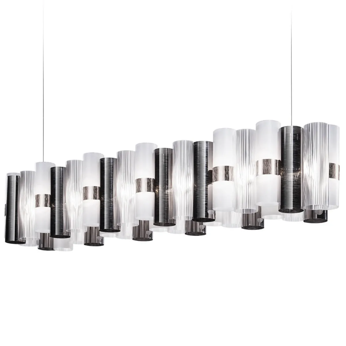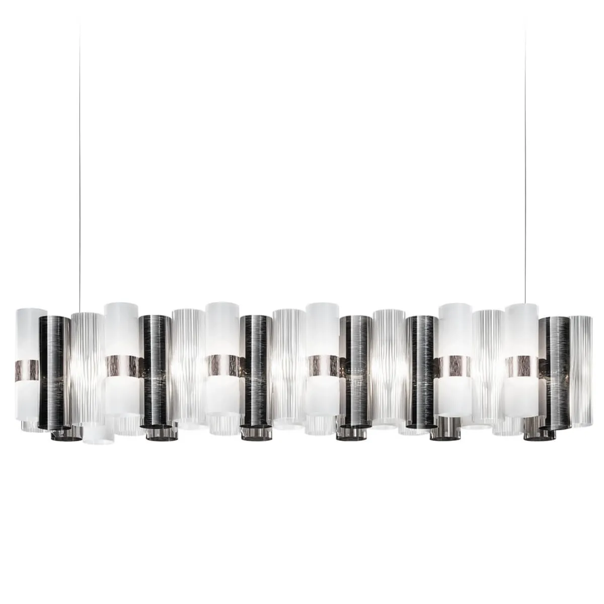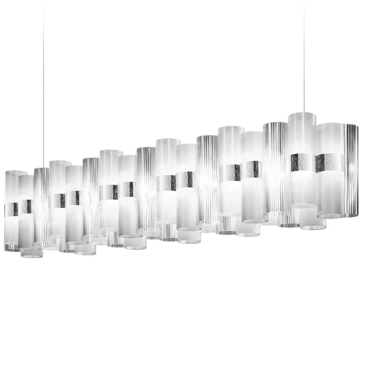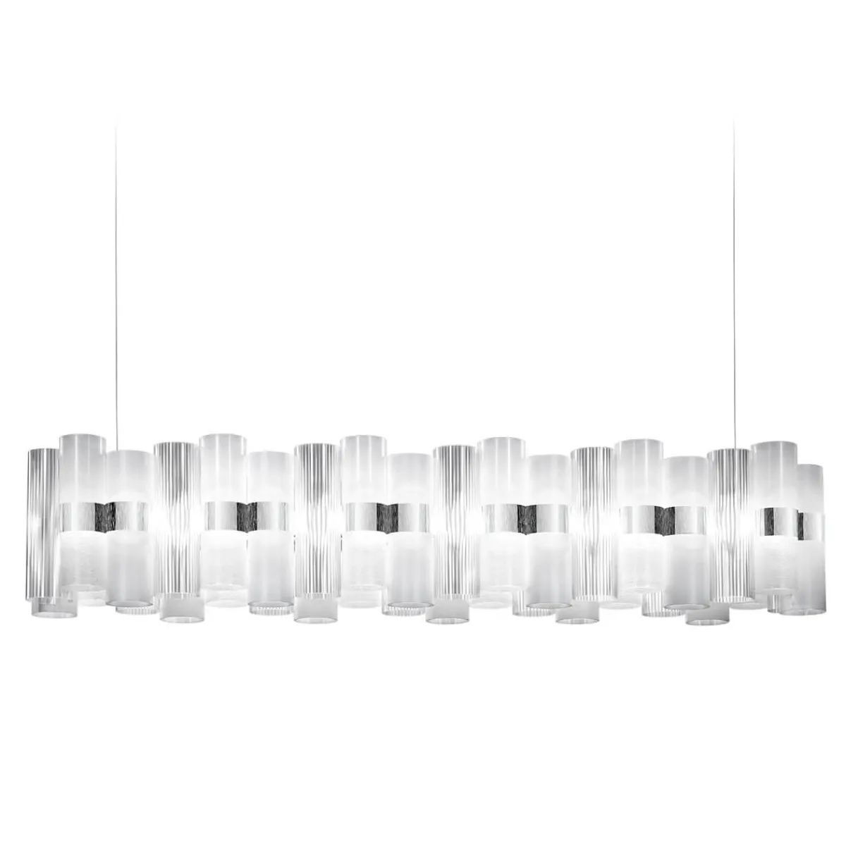 Reisen Sie mit der La Lollo Suspension Linear 140 von Slamp zurück in die glamouröse Ära der 1950er-Jahre. Die Pendelleuchte, kreiert von Lorenza Bozzoli, strahlt einen einzigartigen, effektvollen Zauber aus. Mit ihrer Länge von 142 cm eignet sie sich vor allem zur Beleuchtung rechteckiger Esstische, begeistert aber auch über Theken und Freiflächen in Restaurants und Hotels.