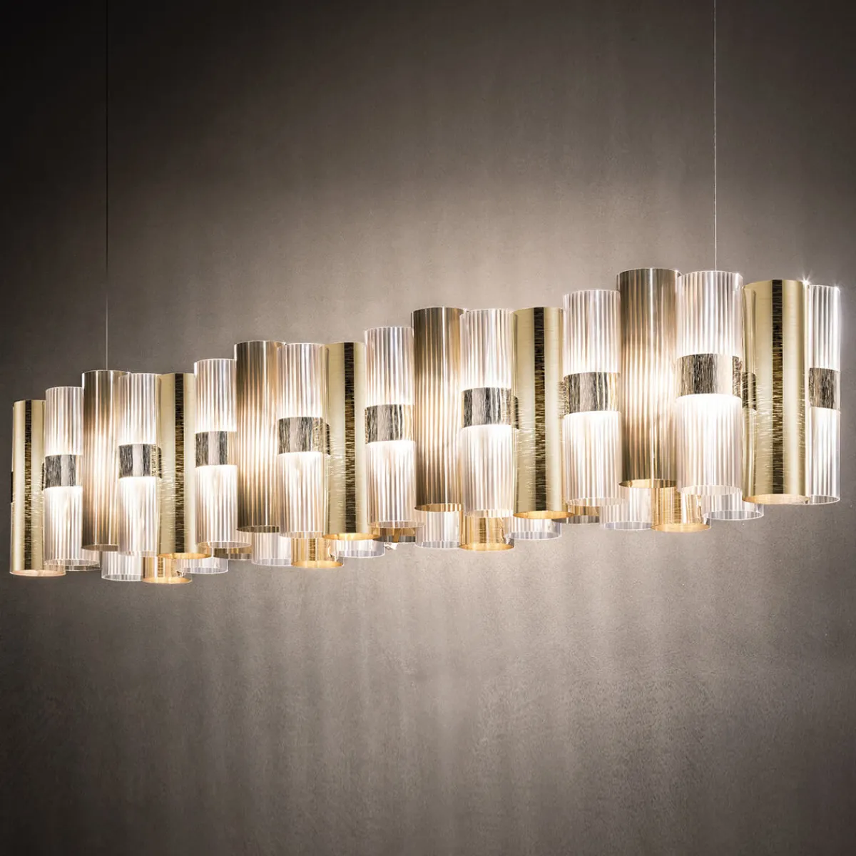 Mit ihrer eleganten Linienführung und den originellen Materialien steht die La Lollo Linear 140 exemplarisch für die Kreativität und Handwerklichkeit der Marke Slamp. Wesentliches Merkmal des Designs ist der Rippeneffekt der einzelnen Kunststoffröhren, der sich aus den aufwendig veredelten, handgeformten Technopolymeren Lentiflex® und Opalflex® speist. Das Ergebnis ist eine kunstvolle Lichtquelle, die sich durch ihre Vielseitigkeit und Brillanz auszeichnet.