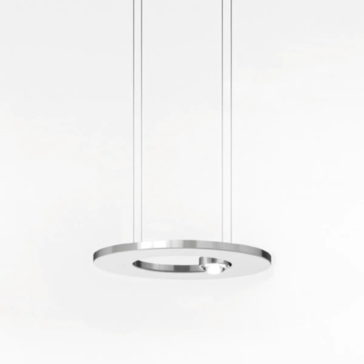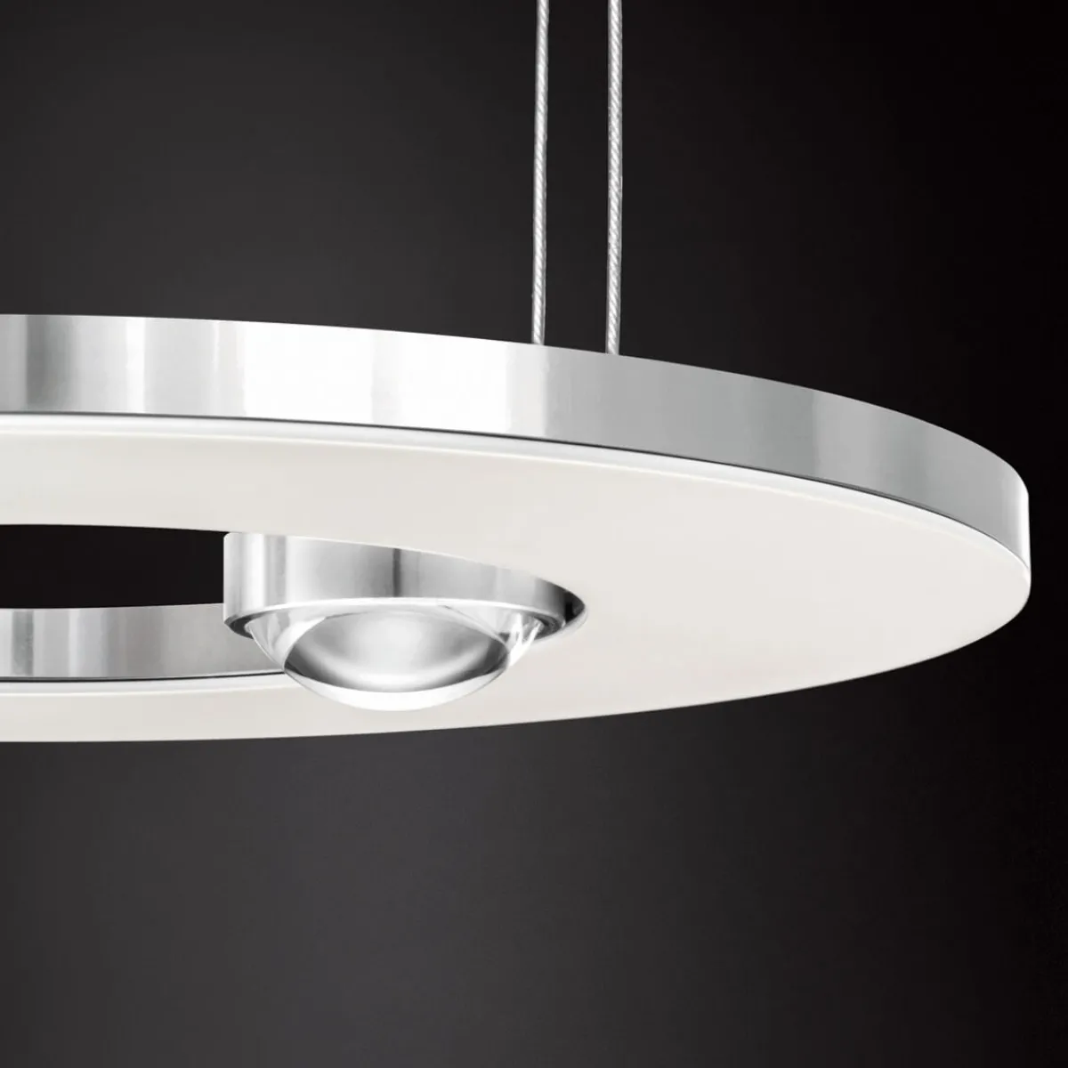 Die Hängelampe ist in verschiedenen edlen Oberflächen erhältlich, die ihr eine luxuriöse Ästhetik verleihen und jede Einrichtung aufwerten. Besonders apart wirkt der ringförmige Lampenschirm in glanzpoliertem Gold, modern und erlesen erscheinen die Versionen mit glanzvoller Verchromung oder matter Emaille-Lackierung. Für umfangreichere Beleuchtungskonzepte ist ein Baldachin zur Reiheninstallation als Zubehör erhältlich.