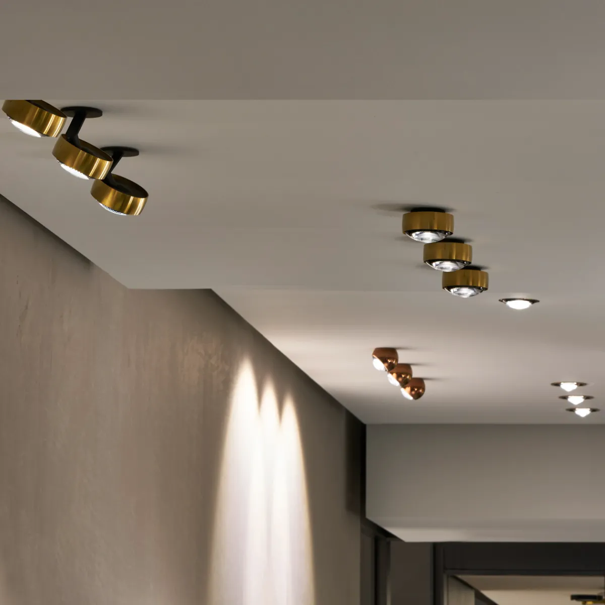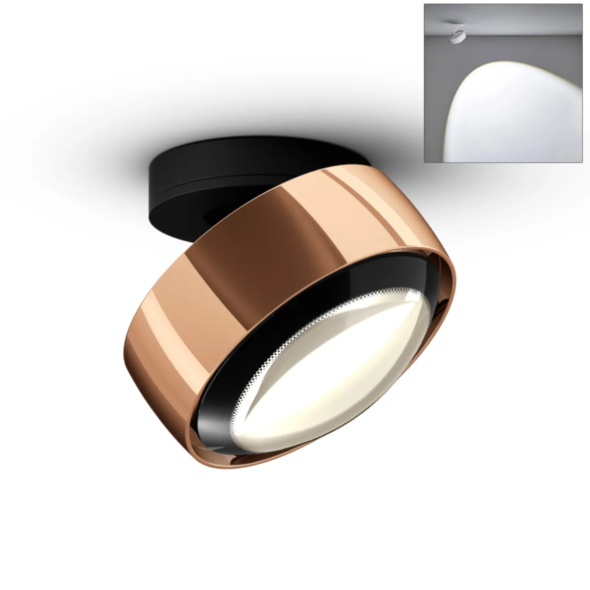 - Moderner Deckenstrahler mit Linse für ein gerichtetes Licht mit klar konturiertem Lichtkegel (Ausstrahlungswinkel ca. 80°)