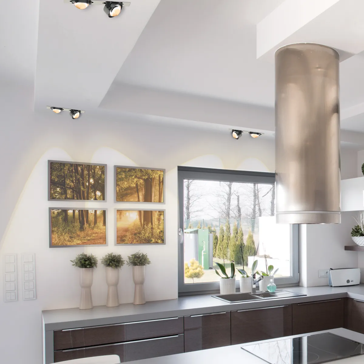 - Deckeneinbaulampe mit um 360° dreh- und um 45° schwenkbaren Köpfen