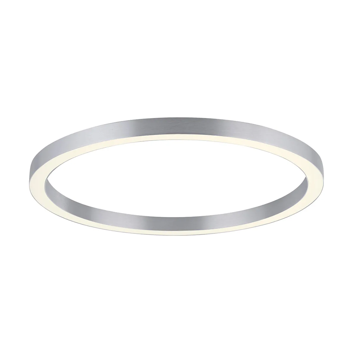 Erleben Sie schlichte Eleganz mit der Lines Round LED Deckenleuchte von Paul Neuhaus PURE. Die ringförmige besticht durch minimalen Materialeinsatz und eine ästhetische Optik ohne störenden Deckenkasten. Mit einem Durchmesser von 50 oder 70 cm und gebürstetem Aluminium oder ein elegantes schwarz fügt sie sich perfekt in jedes moderne Interieur ein.