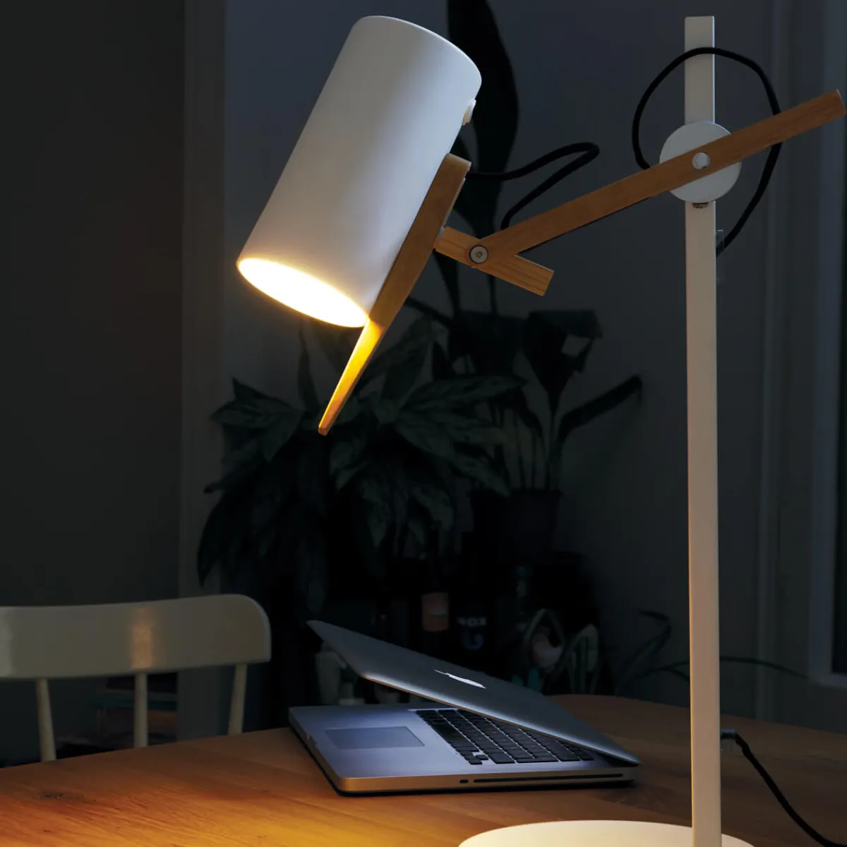 - Funktionale Tischleuchte mit beweglichem Arm aus Eichenholz