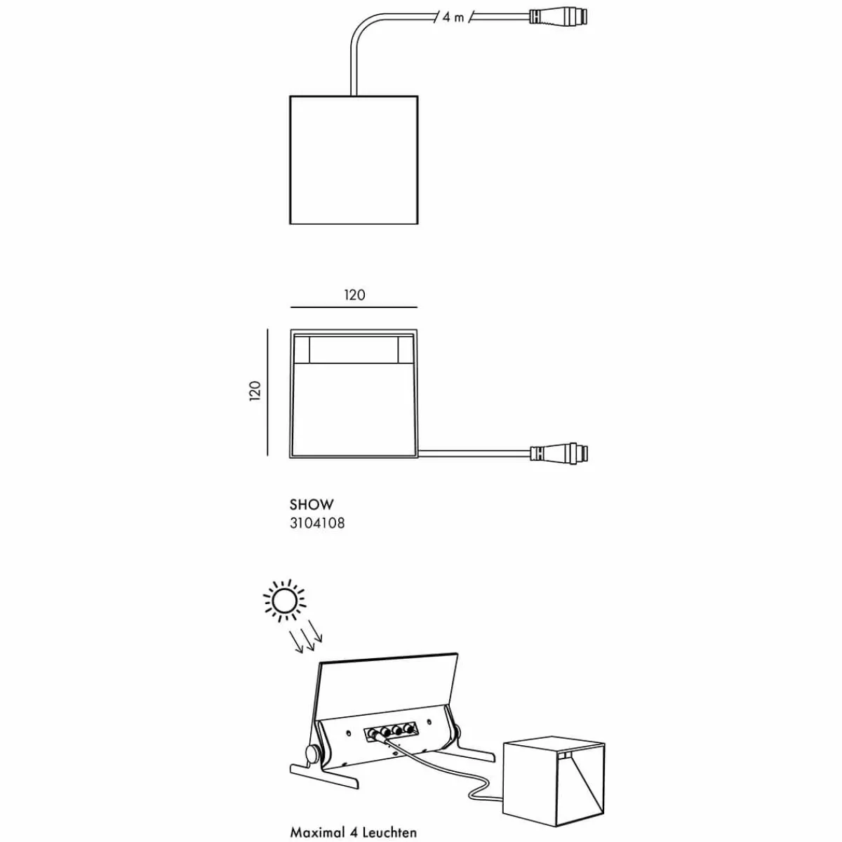 Über ein 2 Meter langes Kabel mit IP68-Verbindung wird die flexibel mit der Solar Power Bank verbunden. In Kombination mit den Kabeln der Station lassen sich Leuchten im Umkreis von bis zu 8 Metern platzieren – perfekt für Grundstücksbereiche ohne direkte Sonneneinstrahlung oder schwer zugängliche Ecken im Garten.