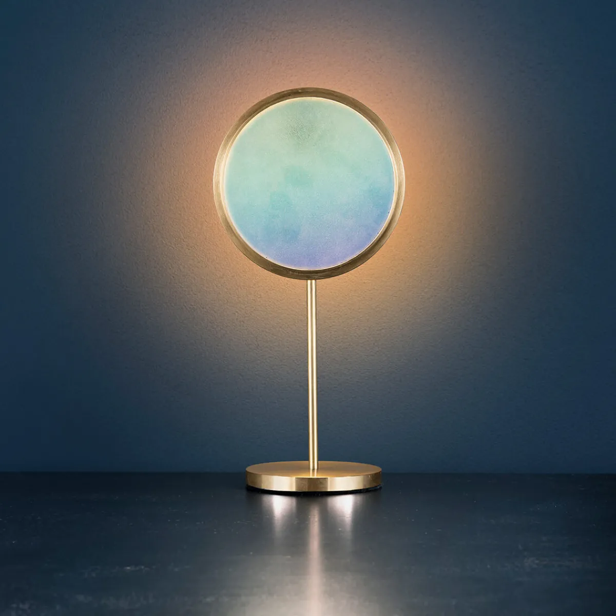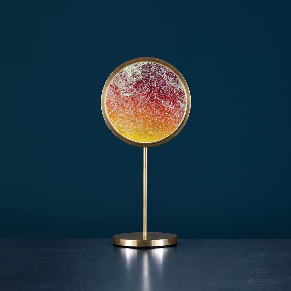 Die Catellani & Smith Talismano LED Tischleuchte ist ein wertvolles Kleinod, das zu Hause, aber auch im gediegenen Objektbereich eindrucksvolle Lichteffekte schafft. Die wurde in produktiver Zusammenarbeit von Catellani & Smith mit der Designerin Giulia Archimede kreiert. Ihre einzigartige Ästhetik verdankt sich dem Leuchtenschirm, einem nuanciert schillernden Glas, das in den Messingrahmen eingefügt ist. Je nach Lichteinfall variiert es zwischen warmen Tönen in Rot und Orange und zarten Blautönen.