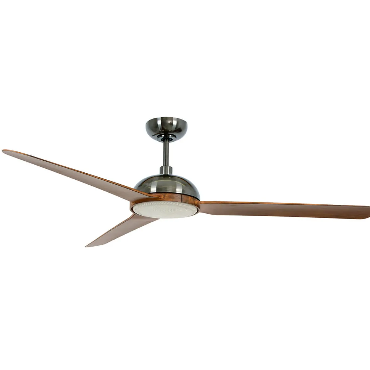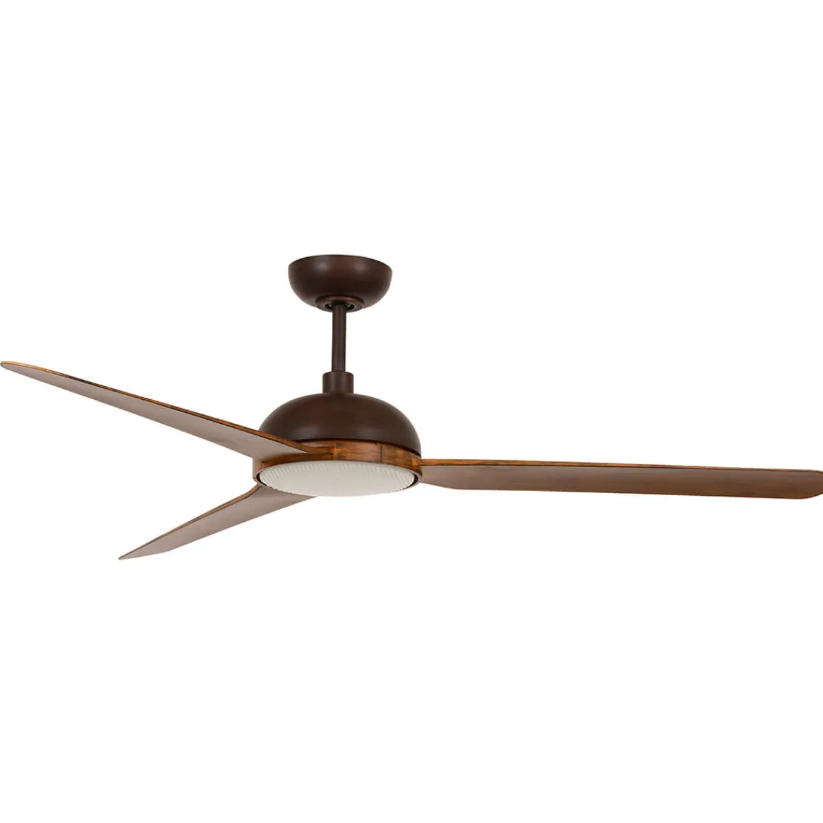Das integrierte, austauschbare LED- mit eine warmweißen Lichtfarbe von 3.000 Kelvin ist in drei Stufen dimmbar. Beleuchtung und Ventilatorgeschwindigkeit lassen sich über die mitgelieferte Fernbedienung bequem steuern. Die praktische Memory-Funktion erlaubt es zudem, die zuletzt gewählte Einstellung zu speichern und beim nächsten Einschalten wieder abzurufen.
