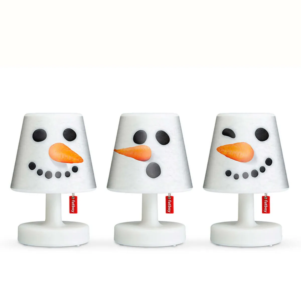 Mit den Mini Cappies Snowmen verleihen Sie Ihren Fatboy Edison the Mini Lampen dekorativen Pfiff, der perfekt zur Winter- und Festtagszeit passt. Die Design-Lampenschirme, die von lustigen Schneemanngesichtern geschmückt werden, lassen sich den beliebten Akkuleuchten einfach von oben her aufsetzen. Bitte beachten Sie, dass die Designschirme nicht vormontiert, sondern in einem flachen Fatboy Umschlag geliefert werden. Sie können jedoch in einem einfachen Handgriff zusammengesteckt werden.