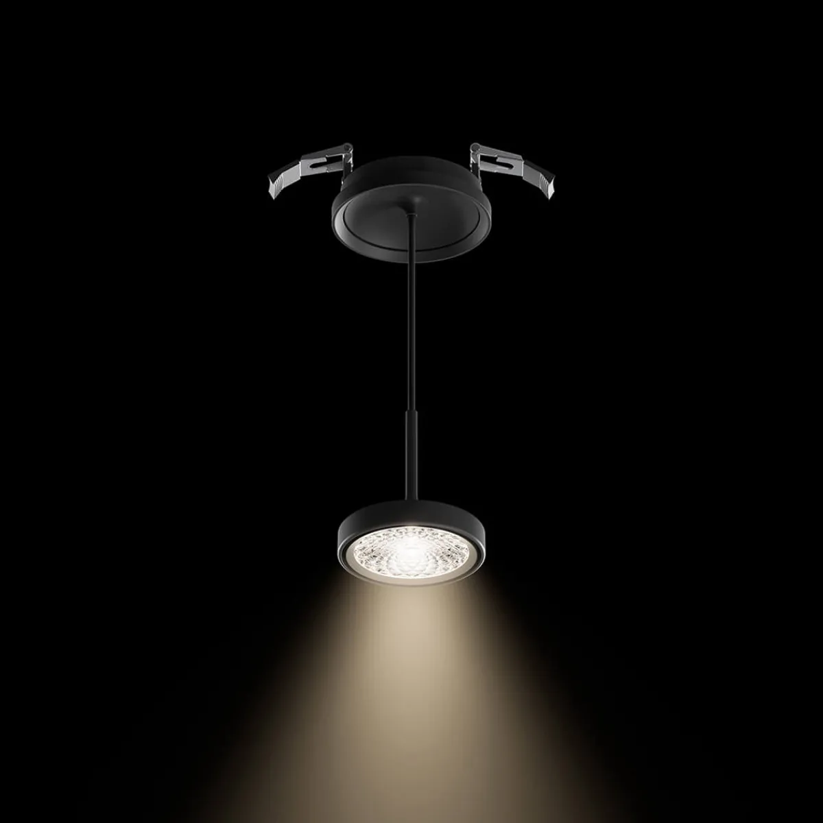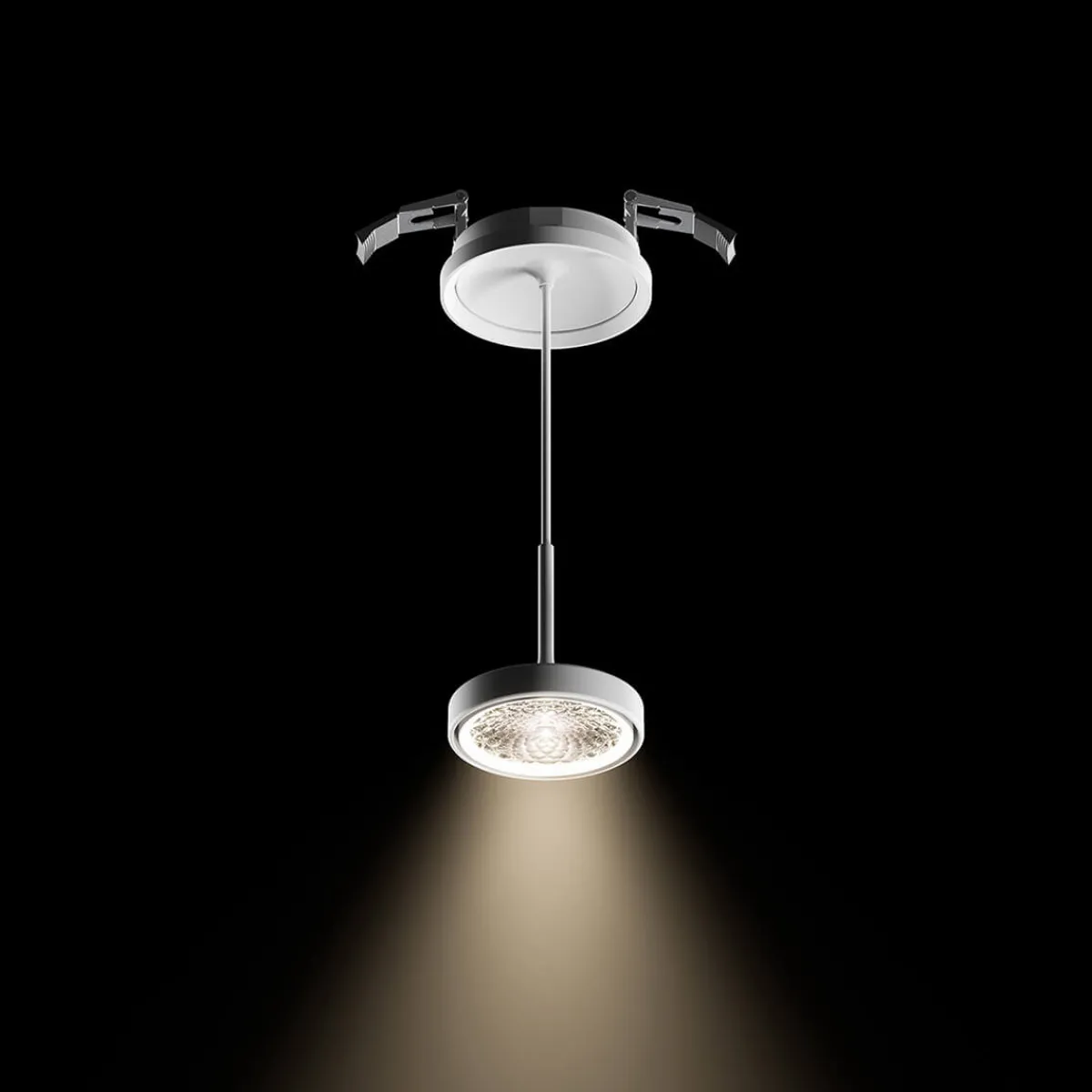 Erhältlich ist die Pendellampe mit zwei verschiedenen Abstrahlwinkeln: Der breitere Winkel von 50° eignet sich hervorragend zur gleichmäßigen Ausleuchtung größerer Flächen, während der engere Winkel von 36° das Licht gezielt auf bestimmte Bereiche konzentriert, um definierte Hell- und Dunkelzonen zu gestalten. Diese Flexibilität macht die Nivo zu einem vielseitigen Instrument in der professionellen Lichtplanung.