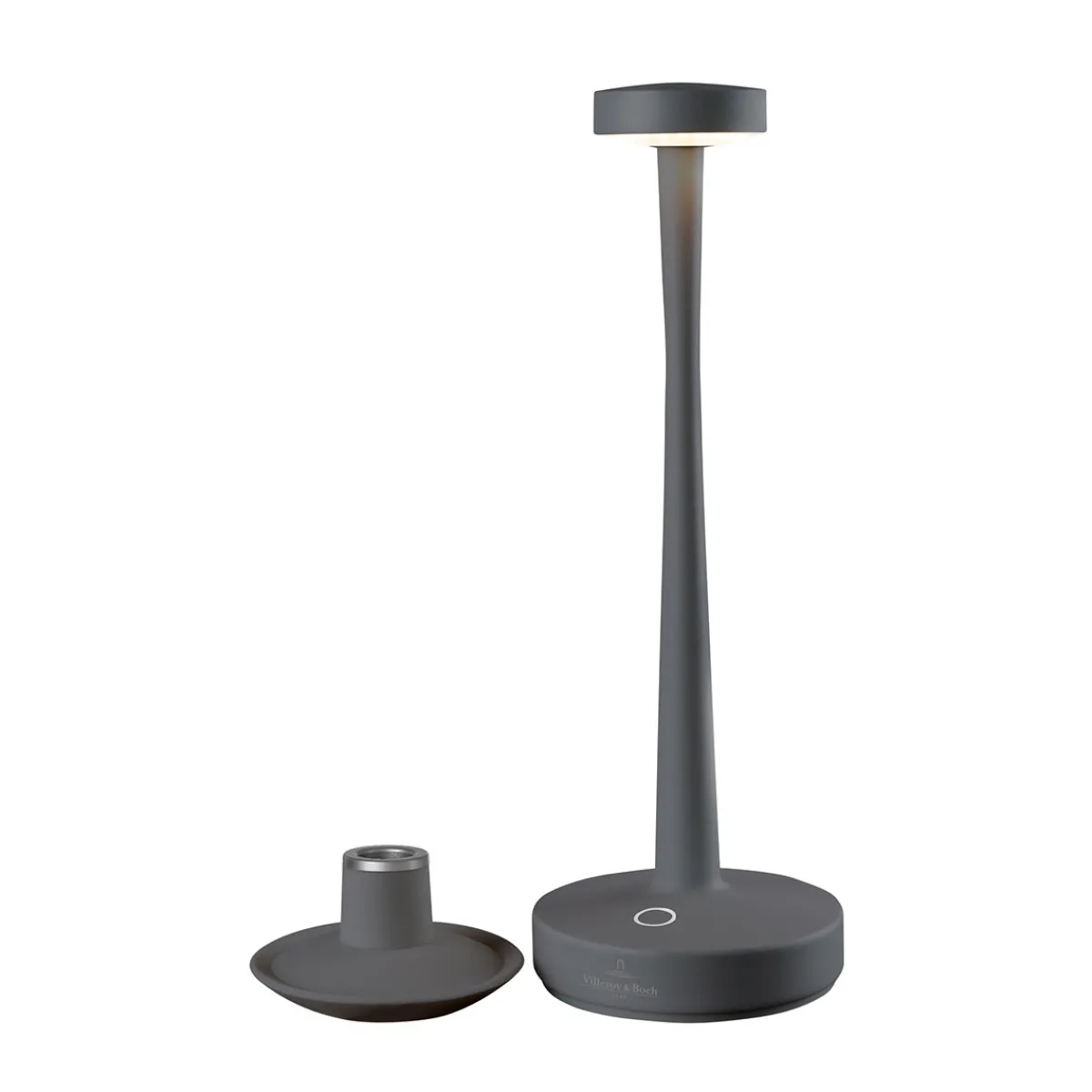 Typisch für die Manufaktur Villeroy & Boch, vereint die Akkulampe ein elegantes Design mit vielseitiger Funktionalität. Sie haben die Wahl, die mit oder ohne abnehmbarem Kerzenhalter zu nutzen, ganz nach Ihren individuellen Vorlieben. Möchten Sie eine Stabkerze verwenden, wird der Silikon-Kerzenhalter einfach auf den flachen Leuchtenkopf gesteckt – und schon umweht Sie ein Hauch von Romantik. Ob als stilvoller Kerzenständer oder als moderne Tischlampe, die Aarhus ist ein echter Blickfang.