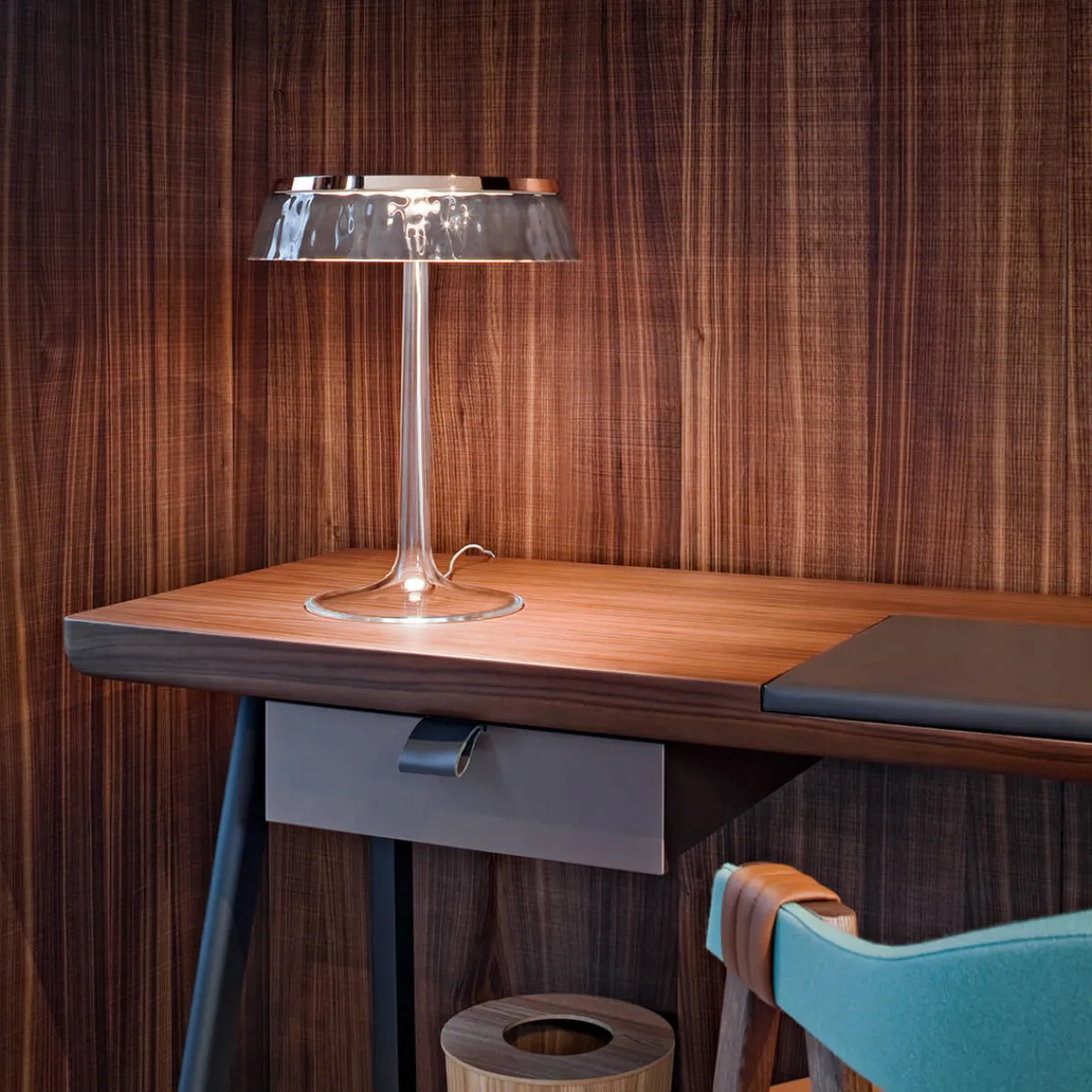 In der Tischlampe Bon Jour verbinden sich französische Leichtigkeit, italienische Lichtinnovation und zeitgenössisches Design zu einer harmonischen Einheit. Sie ist das perfekte Objekt für stilvolle Wohnbereiche, moderne Gewerberäume oder anspruchsvolle Lobbys – und überall dort, wo Licht mehr als nur Funktion sein darf.