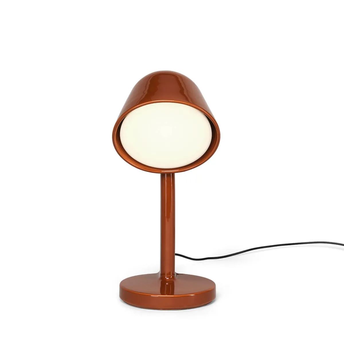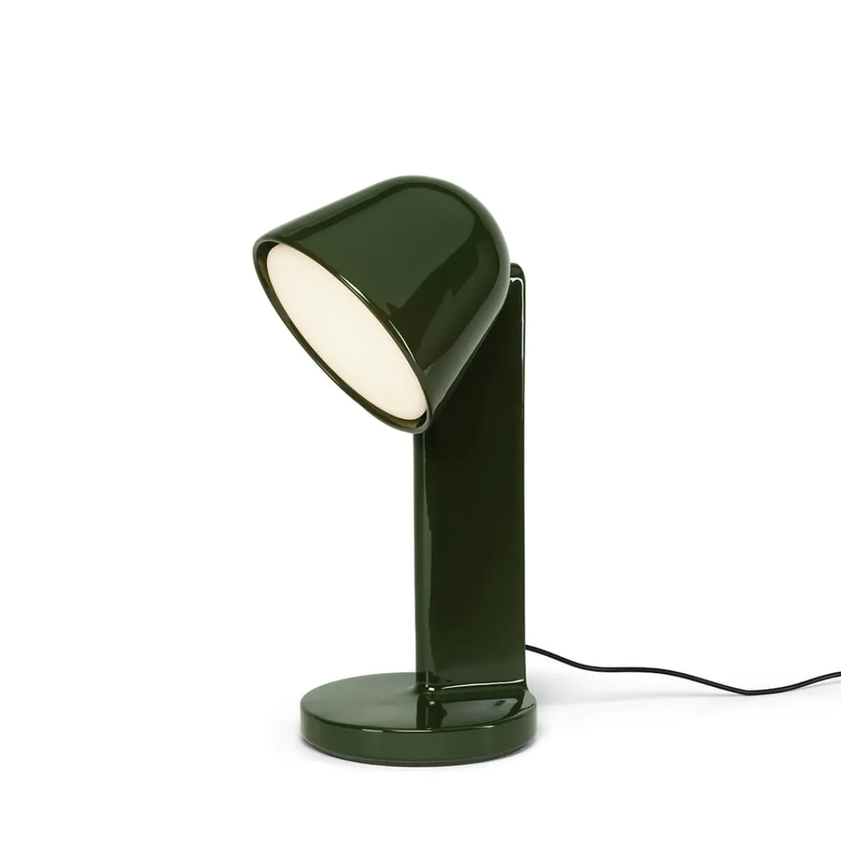 Die Flos Céramique Down Tischleuchte zeichnet sich durch ihren geneigten Leuchtenkopf aus, der einen direkten und fokussierten Lichtstrahl nach unten abgibt. Diese gezielte Lichtausrichtung macht sie zur idealen Tisch- und Leseleuchte. Ein weißer Diffusor aus Polycarbonat sorgt für eine stimmungsvolle und weiche Beleuchtung, perfekt für Beistelltische, Nachttische und Schreibtische.