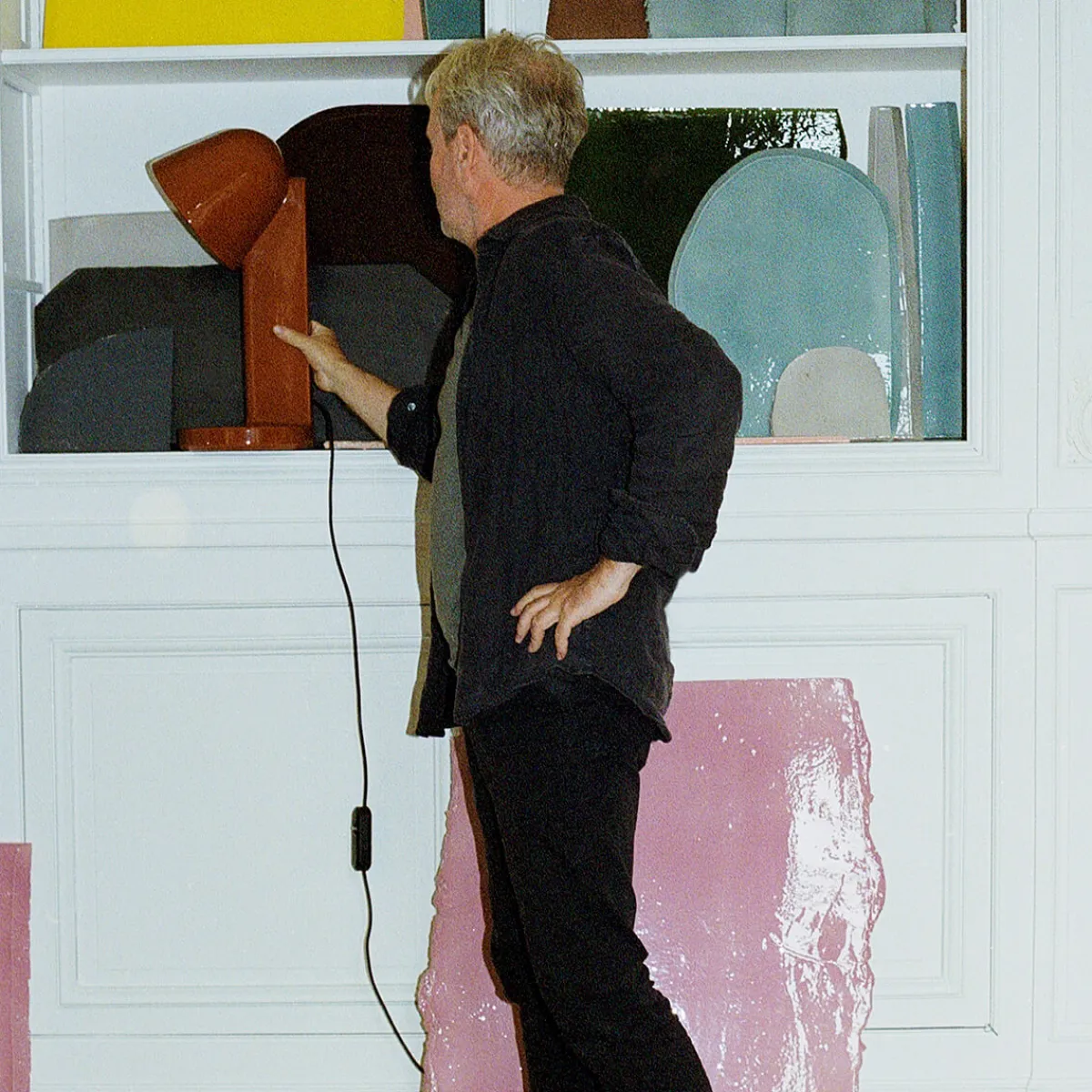 Ronan Bouroullec hat mit der Flow Céramique Down Tischleuchte eine Designlampe geschaffen, die die Grenzen zwischen funktionaler Beleuchtung und skulpturaler Schönheit verschwimmen lässt. Ein wahres Meisterwerk, das sowohl visuelle Poesie als auch technische Raffinesse in sich vereint.