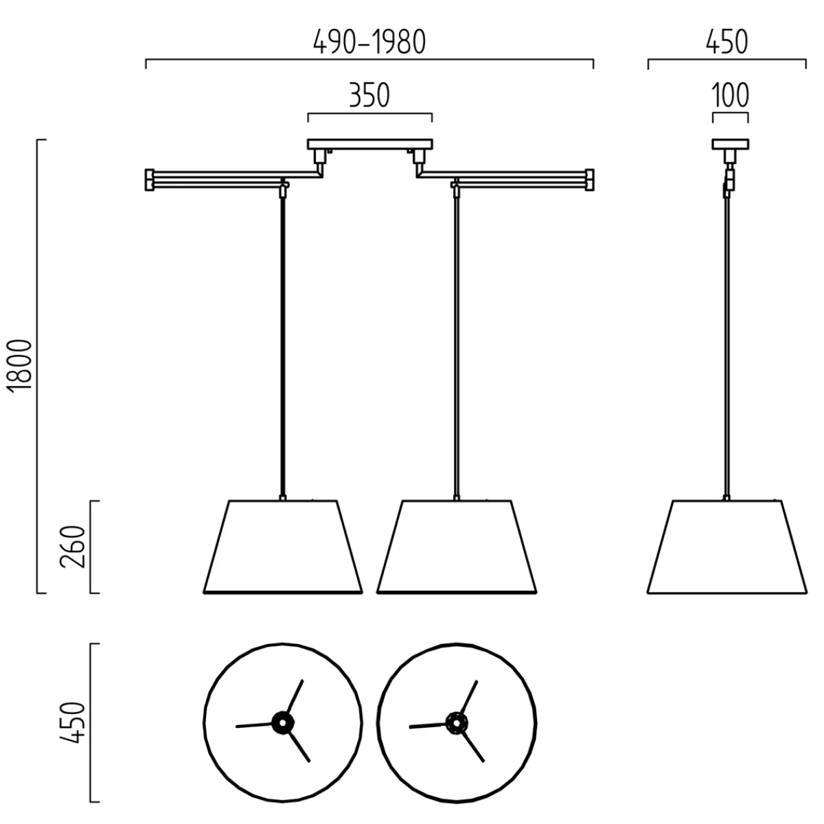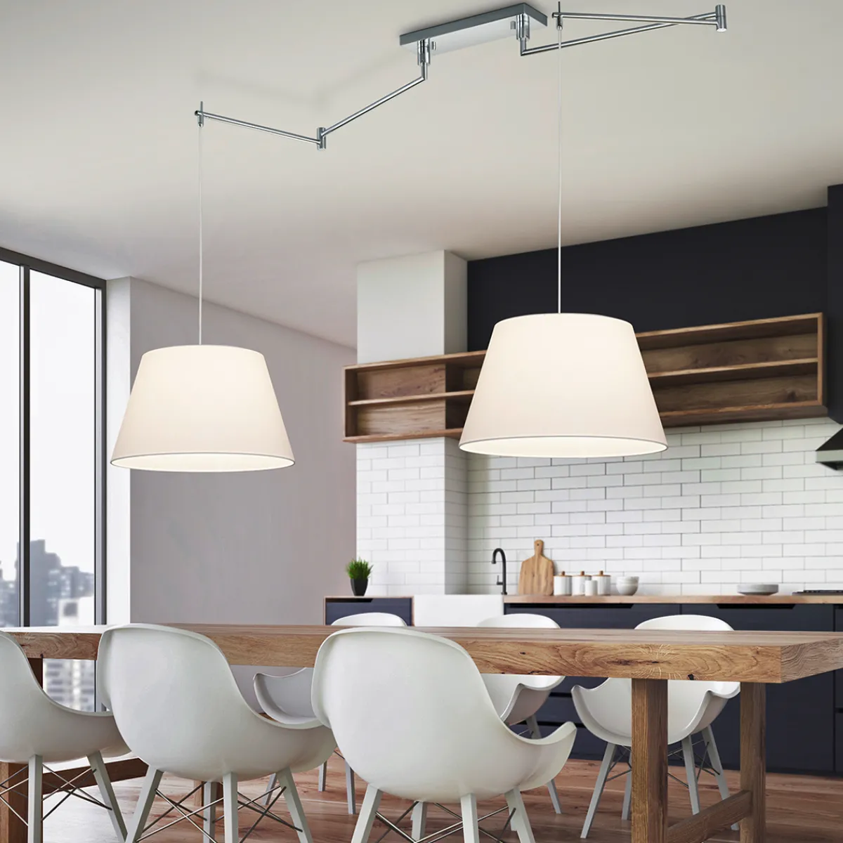 - Dezentrale Pendelleuchte mit konischen Schirmen aus Chintz