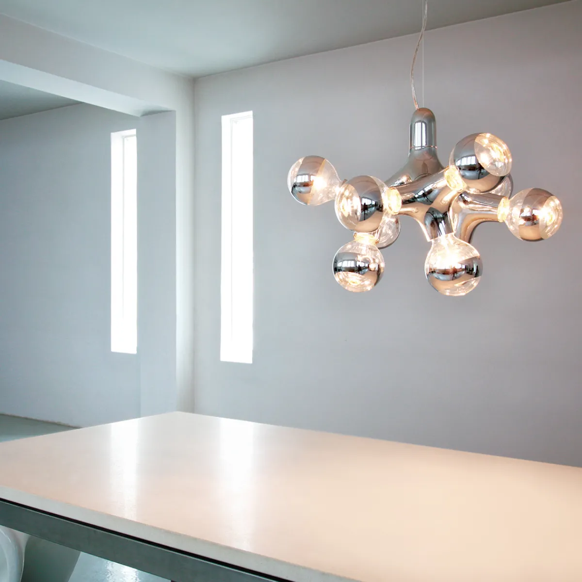 Wir bitten Sie zu beachten, dass die next DNA Chandelier Pendelleuchte ohne geliefert wird. Je nach gewünschter Lichtwirkung steht es Ihnen frei, die mit klaren, opalen oder streifenverspiegelten Lampen zu bestücken.
