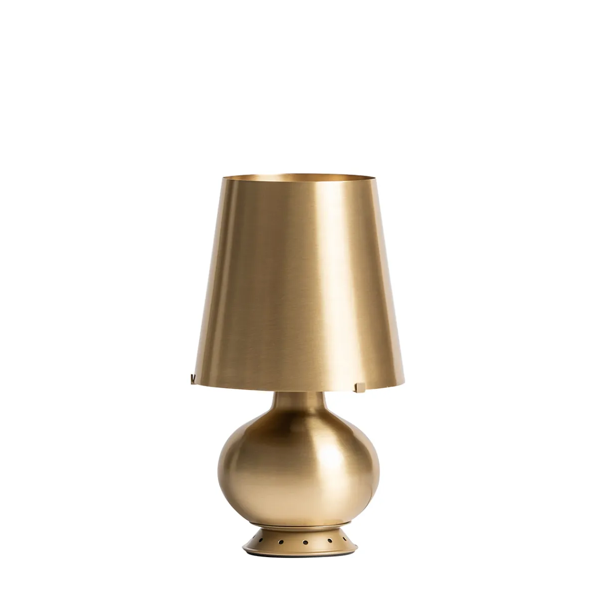 Bitte beachten Sie, dass es zu den Grundeigenschaften von Messing gehört, im Laufe der Zeit – aufgrund natürlicher Oxidationsprozesse – eine leichte Patina auszubilden. Um Strukturveränderungen dieser Art vorzubeugen, empfehlen wir Ihnen, die Fontana Piccola Tischleuchte in regelmäßigen Abständen zu reinigen.