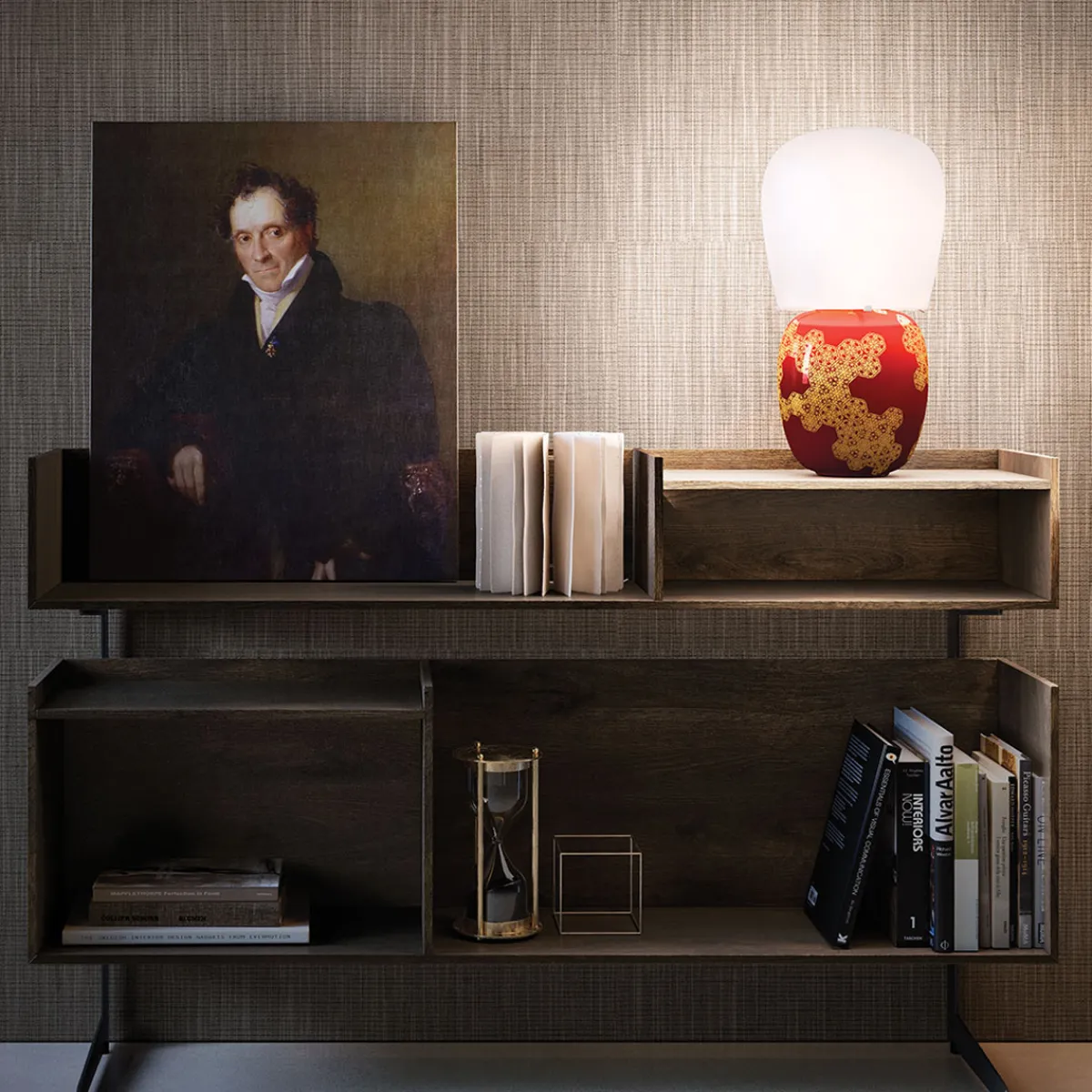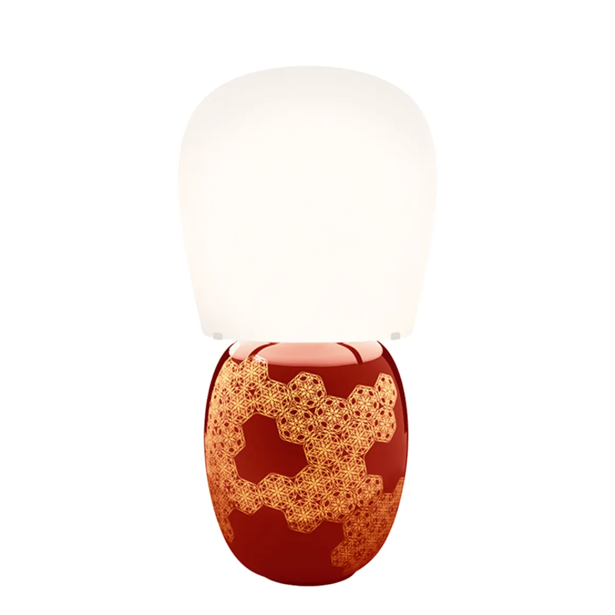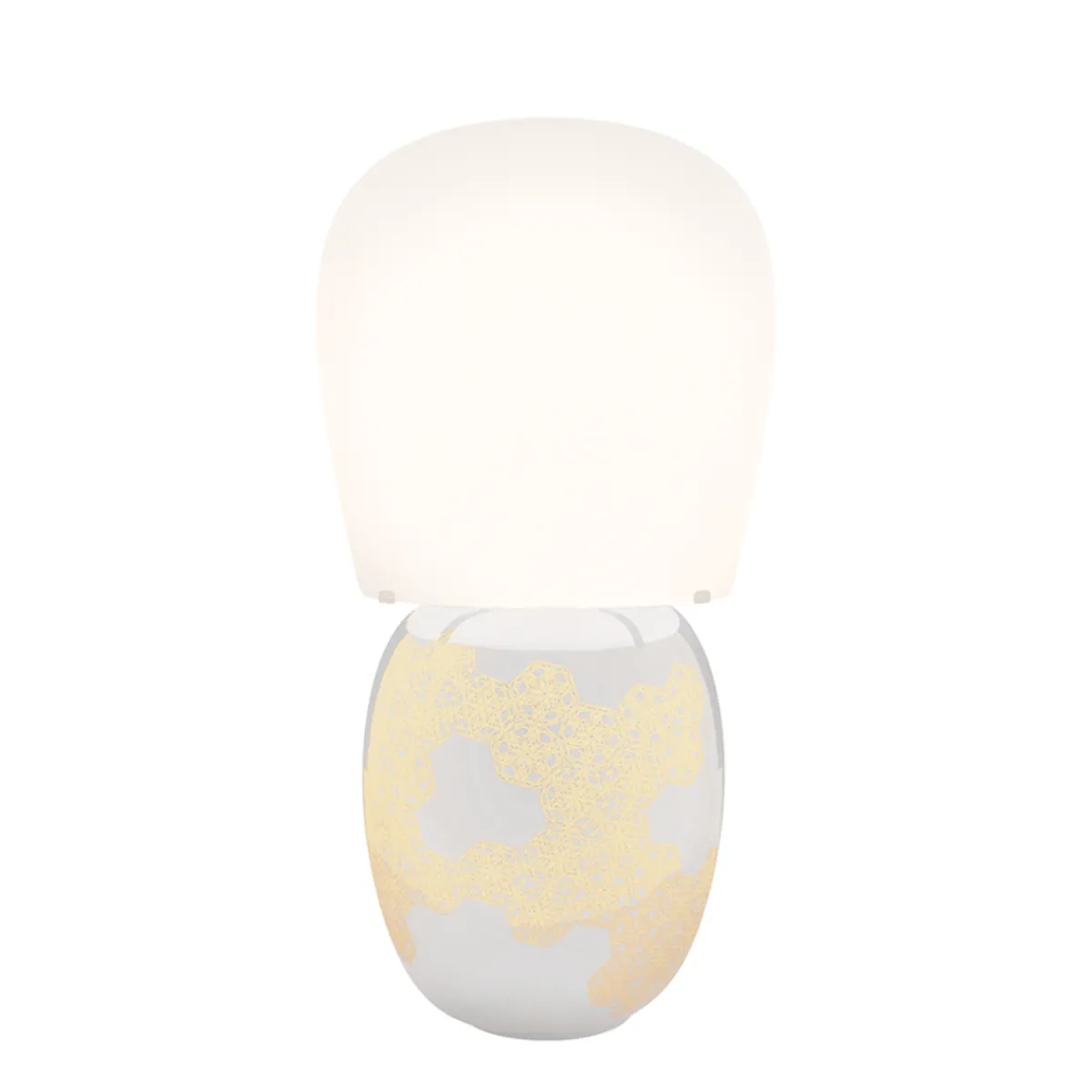- Formschöne Tischleuchte mit kunstvoll verziertem Emaille-Keramikkörper (hergestellt via „Dreistufenbrand“-Methode)